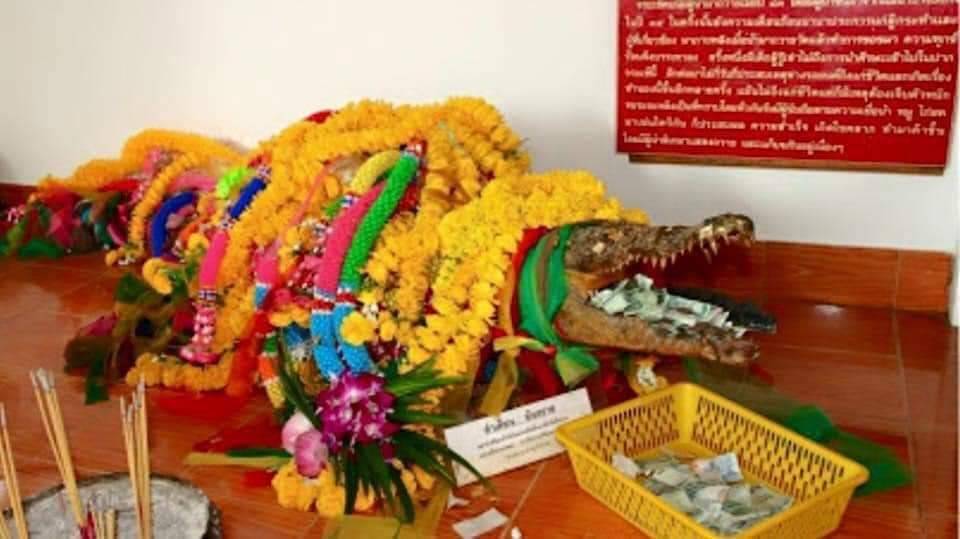 ประวัติน่าขนลุก จุดธูปขอแล้วได้ ชาวบ้านเชื่อกันว่าเป็นจระเข้ประจำศาลเจ้าพ่อ ตรงคุ้งแม่น้ำบางปะกง มีผู้ไม่รู้นำปืนไปยิงจนตาย เมื่อราวปี 2535 เสร็จแล้วนำเนื้อมากินกัน และเอาตัวสตาฟไว้ที่บ้านไปไว้ ก็เกิดแต่เรื่องมีแต่ปัญหากิจการงานต่างๆเสียหายจนเกิดการไม่กล้านำร่างจระเจ้ไว้ที่บ้าน จึงนำมาถวายวัดสมานรัตนาราม ในราวปี 2542 พระภิกษุไพรรัตน์ (ปัจจุบันคือ เจ้าคุณ พระประชาธรรมนาถ เจ้าอาวาสวัด ในขณะนี้) ได้รับเอาไว้และวางไว้ข้างกุฏิ