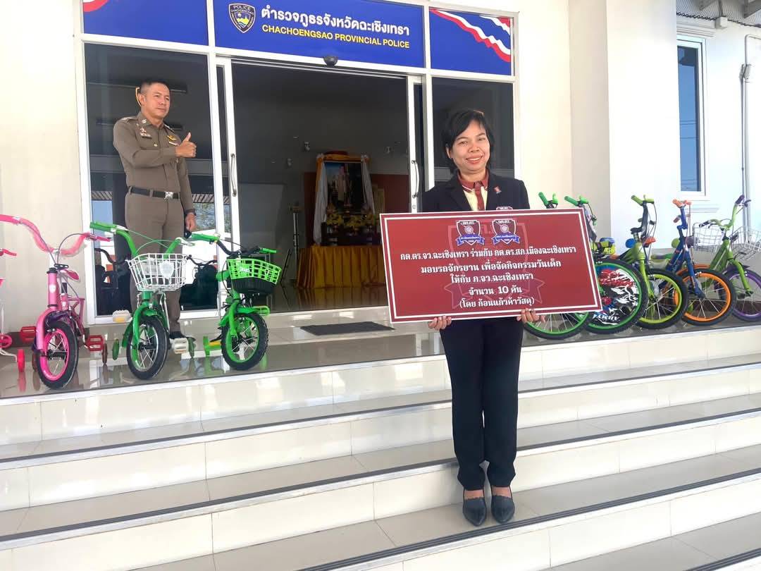 วันที่ 6 ม.ค.68 นายประชา คล้ายสิงห์ ที่ปรึกษาตำรวจภูธรภาค 2 / ประธาน กต.ตร.สภ.เมืองฉะเชิงเทรา พร้อมด้วย ผู้ใหญ่มานัส โท้เป๋า ประธานที่ปรึกษา กต.ตร. นางสาวประภา สิริโสดา รองประธาน กต.ตร. และคณะกต.ตร. ที่ปรึกษา กต.ตร. มอบเงินจัดซื้อของรางวัล และมอบรถจักรยาน 2 ล้อ แก่ พล.ต.ต.นเรวิช สุคนธวิทย์ ผบก.ภ.จว.ฉะเชิงเทรา เพื่อสนับสนุนการจัดกิจกรรมวันเด็กแห่งชาติ ประจำปี 2568 ในวันเสาร์ที่ 11 ม.ค.นี้ ในส่วนของบูธตำรวจภูธรจังหวัดฉะเชิงเทรา จะมีกิจกรรมสันทนาการ สร้างความสุขแก่เด็กๆ มีการเล่นเกมส์ แจกของรางวัลจำนวนมาก บูธตั้งอยู่บริเวณรอบเสาธง หน้าศาลากลางจังหวัดฉะเชิงเทรา