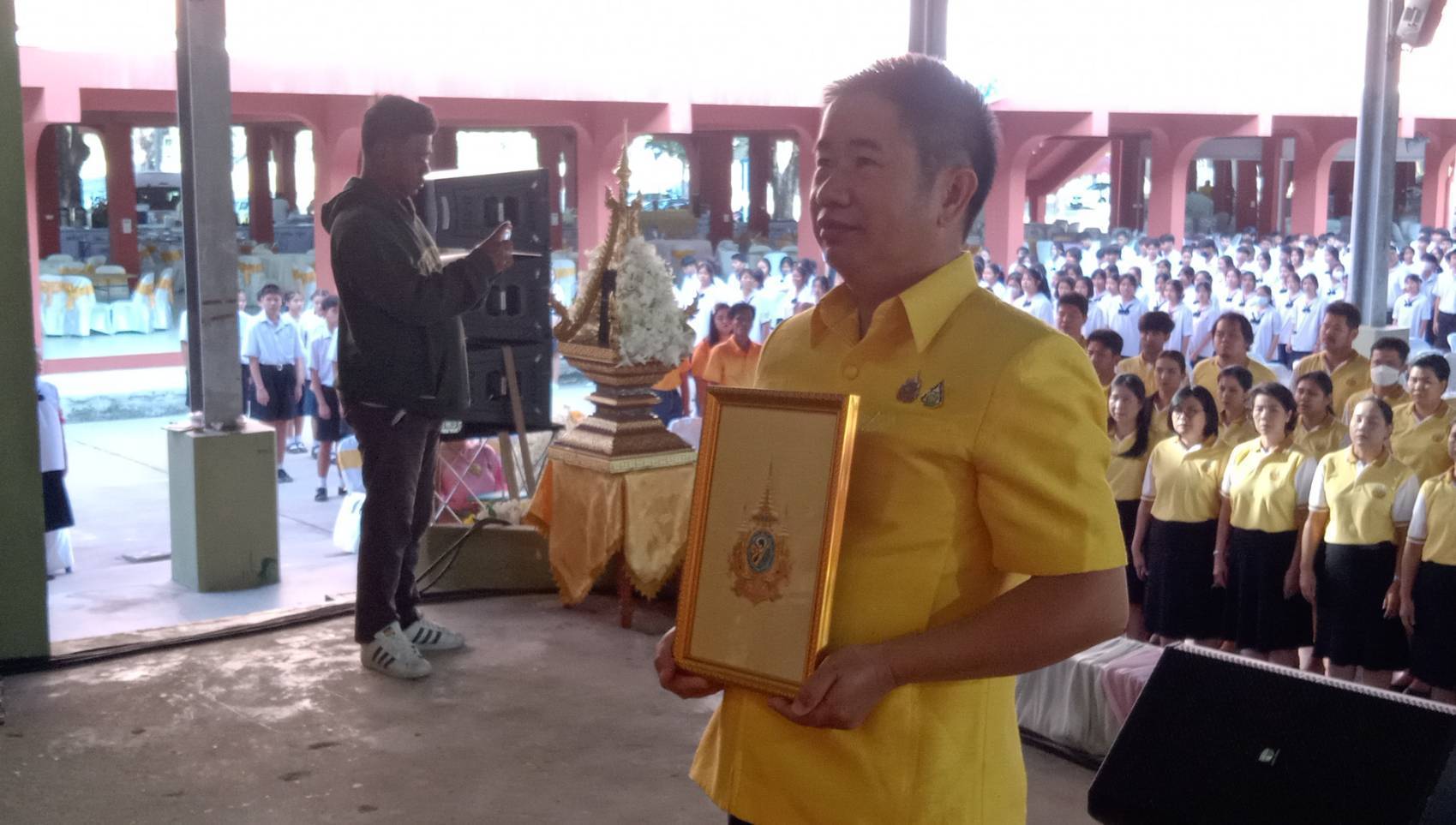 ขณะที่ ดร.ฐิติ ชัยนาม ประธานโครงการสี่เสาหลัก เผยถึงการมอบตราสัญญลักษณ์พระบาทสมเด็จพระเจ้าอยู่หัว รัชกาลที่ 10 ให้กับโรงเรียนเทศบาลบ้านศรีมหาราชา และโรงเรียนสุรศักดิ์วิทยาคม อ.ศรีชา จ.ชลบุรี ว่าเนื่องจากเป็นโรงเรียนที่เข้าเกณฑ์ใน 2 เรื่องคือ 1.มีวงดุริยางค์ที่มีการบรรเลงเพลงพระราชนิพนธ์และเพลงสรรเสริญพระบารมีในทุกกิจกรรม และ 2.เป็นสถาบันการศึกษาที่พร้อมจะจัดกิจกรรมและเข้าร่วมในโครงการสร้างจิตสำนึกในความรักชาติ ศาสนา และพระมหากษัตริย์