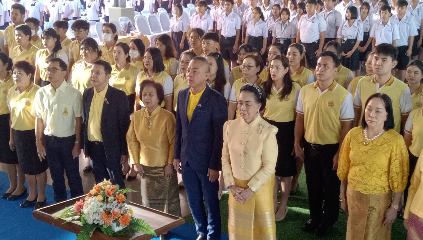 ภูมิใจและขอให้โรงเรียนต่างๆ ได้ดูแบบอย่างกันในสิ่งที่ดีงาม โดยเฉพาะเรื่องการปลูกฝังเรื่องของความรักในสถาบันชาติ ศาสนา และพระมหากษัตริย์ และในวันนี้สถาบันการศึกษาใน อ.ศรีราชา จ.ชลบุรี ได้รับตราสัญญลักษณ์พระบาทสมเด็จพระเจ้าอยู่หัวแล้วถึง 2 แห่ง จึงถือเป็นสิ่งที่มีเกียรติมากสำหรับโรงเรียนที่ได้รับ และอยากจะให้คุณครู รวมทั้งผู้อำนวยการ ตั้งใจทำงานให้ดียิ่งขึ้นเรื่อยๆเพื่อให้สมกับความภาคภูมิใจที่ได้รับ” ดร.ฉวีวรรณ กล่าว