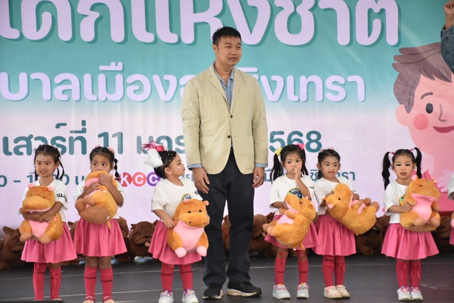 วันที่ 11 มกราคม 2568 นางสาวขวัญตา ฉัตรมงคล รองปลัดเทศบาล รักษาราชการแทนปลัดเทศบาล ปฎิบัติหน้าที่นายกเทศมนตรีเมืองฉะเชิงเทรา เป็นประธานในพิธีเปิดงานวันเด็กแห่งชาติ ประจำปี 2568