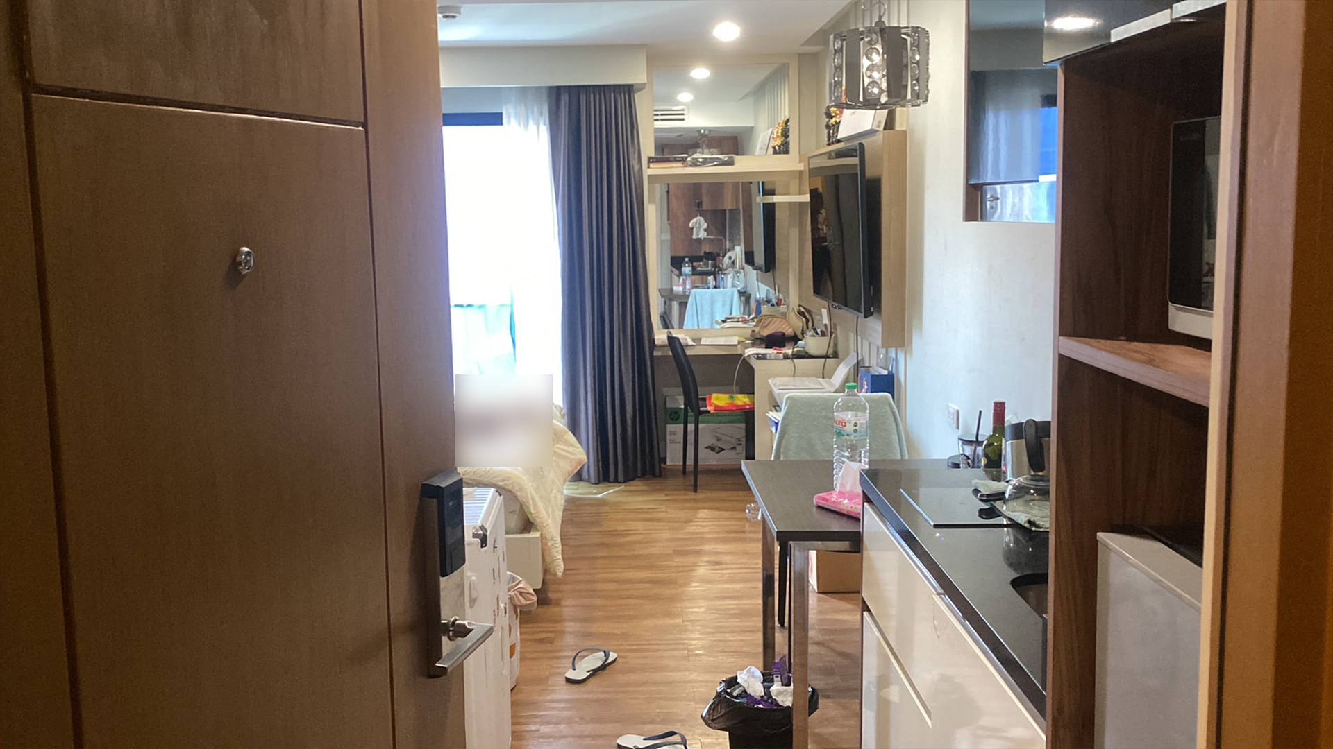 ขณะที่ผู้ก่อเหตุ หลบหนีเข้าไปในห้องพัก ชั้น 6 ห้อง A 618 ก่อนมีเสียงอาวุธปืนดังขึ้น 1 นัด เมื่อตำรวจตรวจสอบ พบว่าผู้ก่อเหตุได้ใช้อาวุธปืน ยิงตัวเองจนเสียชีวิต ทราบชื่อคือ นาย อายุ 40 ปี อาชีพขับขี่รถรับจ้างผ่านแอพพลิเคชั่น ( โบลท์ ) โดยสภาพศพนอนหงายอยู่บนเตียงนอน มีร่องรอยกระสุนยิงเข้าที่บริเวณโหนกแก้มข้างขวากระสุนฝั่งใน นอนจมกองเลือด ที่มือด้านขวากำอาวุธปืน ลูกโม่ ขนาด .38 ไว้แน่น ตำรวจกองพิสูจน์หลักฐานจึงได้ทำการตรวจสอบลายนิ้วมือและเขม่าดินปืน พร้อมทั้งเก็บวัตถุพยานในที่เกิดเหตุไว้เป็นหลักฐาน