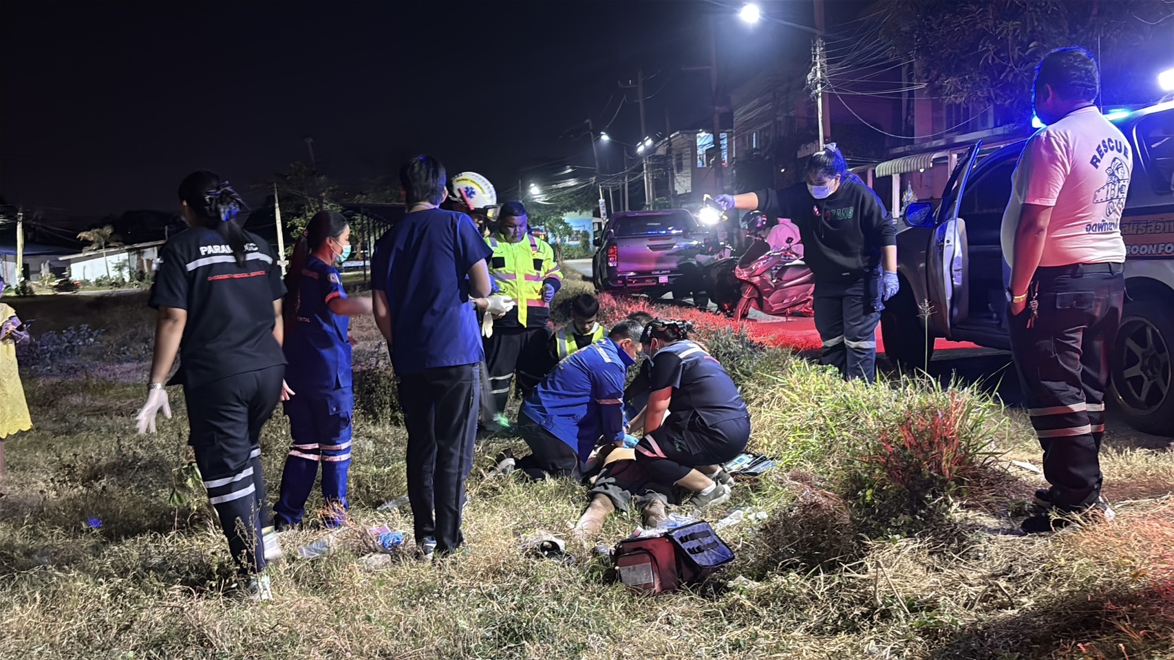 ที่เกิดเหตุมีชาวบ้านมองดูเหตุการณ์เป็นจำนวนมาก พบร่างชายชรา อายุ 75 ปี นอนหมดสติ อยู่ริมทาง เจ้าหน้าที่กู้ภัยฯ อยากให้การช่วยเหลือปฐมพยาบาลเบื้องต้น ปั๊มหัวใจเพื่อยื้อชีวิต โดยมีลูกๆ เฝ้าดูอาการด้วยความเป็นห่วงอย่างใกล้ชิด แต่คุณตาสิ้นใจเสียชีวิตในเวลาต่อมา