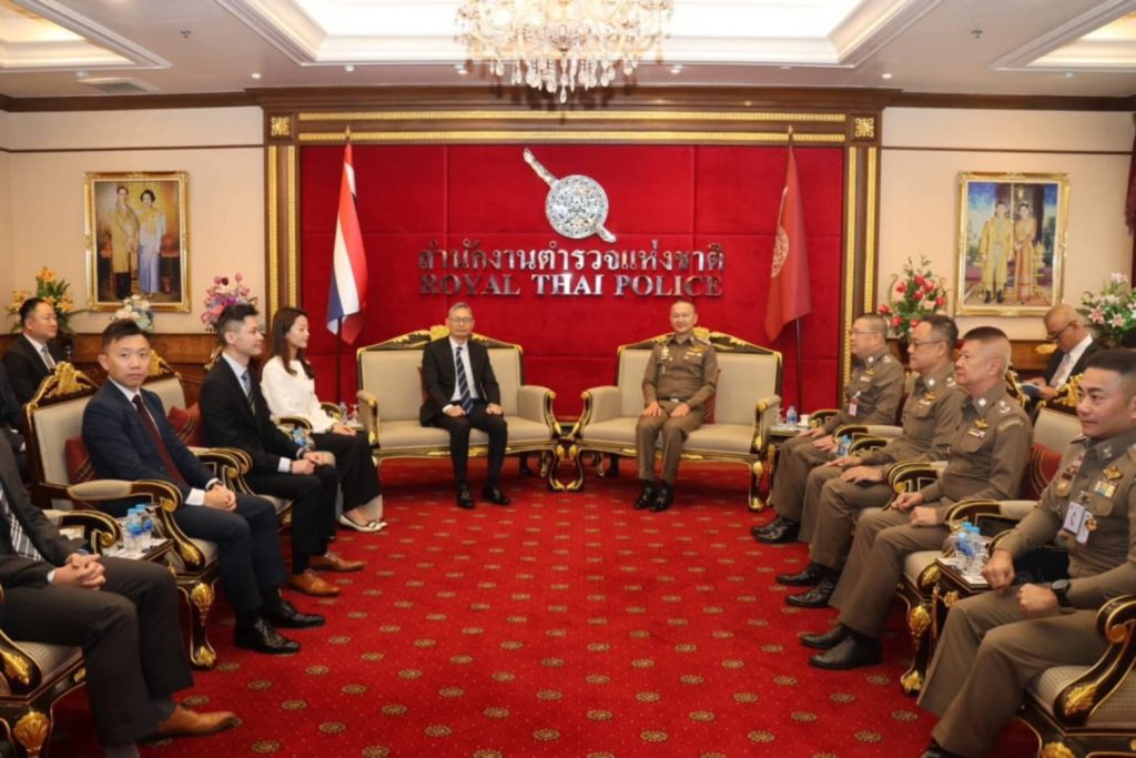 วันนี้ (14 มกราคม 2568) เวลา 09.00 น. พล.ต.อ. ธัชชัย ปิตะนีละบุตร จเรตำรวจแห่งชาติ ในฐานะผู้อำนวยการ ศูนย์พิทักษ์เด็ก สตรี ครอบครัว ป้องกันปราบปรามการค้ามนุษย์ และภาคประมง สำนักงานตำรวจแห่งชาติ และผู้อำนวยการศูนย์ปราบปรามอาชญากรรมทางเทคโนโลยีสารสนเทศ สำนักงานตำรวจแห่งชาติ (จตช./ผอ.ศพดส.ตร./ผอ.ศปอส.ตร.) พร้อมด้วย พล.ต.ต. วรวัฒน์ อมรวิวัฒน์ รอง ผบช.ส , พล.ต.ต.พงษ์สยาม มีขันทอง รอง ผบช.ทท. , พล.ต.ต. ปรัชญา ประสานสุข รอง ผบช.สทส.ชรก.สตม. , พล.ต.ต. ณัฐพงษ์ สัตยานุรักษ์ รอง ผบช.ก., พ.ต.อ.สุรศักดิ์ สุรินทร์แก้ว รอง ผบก.สส.สตม. และคณะเจ้าหน้าที่ตำรวจ ได้ร่วมประชุมกับ นายไมเคิล ชัวค (Mr. Michael Cheuk) รองปลัดกระทรวงความมั่นคงเขตบริหารพิเศษฮ่องกงแห่งสาธารณรัฐประชาชนจีน พร้อมคณะ ณ สำนักงานตำรวจแห่งชาติ โดยหารือในเรื่องการปราบปรามแก๊งคอลเซ็นเตอร์ที่ใช้ประเทศไทยเป็นทางผ่าน และปัญหาการค้ามนุษย์ในพื้นที่ชายแดน