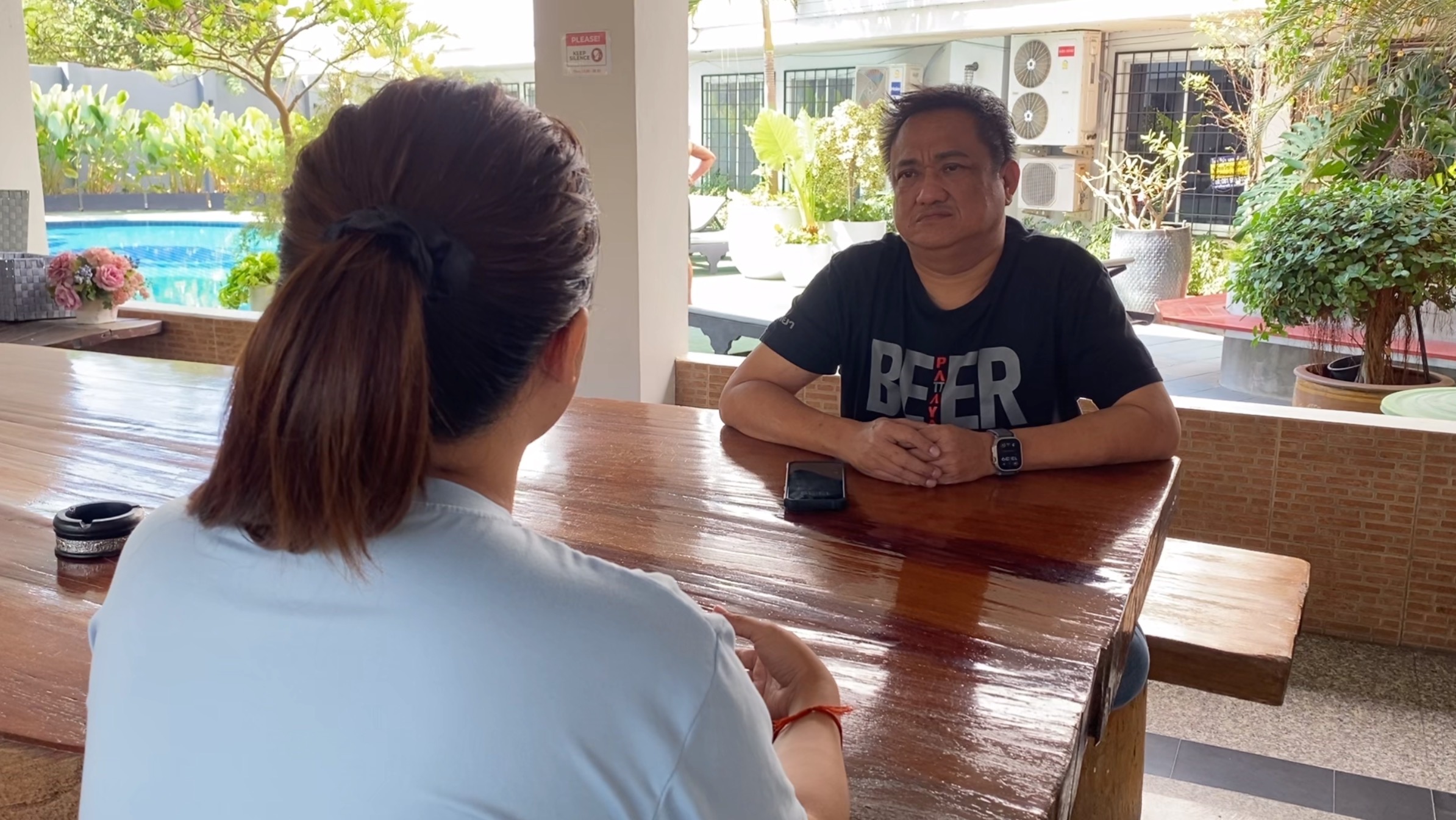แต่หลังจากนั้น ตนเองถูกคู่กรณี หาเรื่องมาโดยตลอด ส่วนใหญ่จะเป็นการส่งข้อความมาด่า แถมดูถูกว่า “อีลาว” จนกระทั่งในคืนวันเกิดเหตุ คงมีใครโทรไปคู่กรณีว่า ตนเองออกไปเที่ยวบาร์เบียร์ จึงยกพวกมาดักรอทำร้ายหน้าร้านอาหารอินเดีย พอตนเองเดินมาเจอคู่กรณี เห็นท่าไม่ดีจึงพยายามวิ่งหนี เพื่อไปขอให้คนช่วย แต่วิ่งหนีไม่ทัน แต่ก็ถูกคู่กรณีวิ่งตามมารุมตามคลิป ทั้งเตะ กระทืบหน้า โดยมีพลเมืองดีพยายามเข้ามาห้ามและแยกคู่กรณีออก จากนั้นคู่กรณีก็หลบหนีไป ส่วนตนเองก็ได้เข้าแจ้งความกับตำรวจ สภ.เมืองพัทยา เพื่อดำเนินการตามกระบวนการของกฎหมายต่อไป ขณะเดียวที่ผ่านมา คู่กรณีสาวประเภทสองนี้ก็เคยทำร้ายนักท่องเที่ยวที่ชายหาดมาแล้วหลายครั้ง