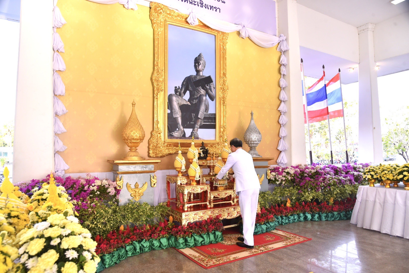 โอกาสนี้ประธานในพิธีถวายพานพุ่มดอกไม้สด จุดธูปเทียนเครื่องทองน้อย และอ่านคำถวายอาศิรวาทราชสดุดี เพื่อเป็นการน้อมรำลึกในพระมหากรุณาธิคุณของพ่อขุนรามคำแหงมหาราช ที่ทรงประดิษฐ์ตัวอักษรไทยขึ้นเมื่อปีพุทธศักราช 1826 ซึ่งเป็นต้นกำเนิดของอักษรไทยที่ใช้กันจนถึงปัจจุบัน และเพื่อน้อมรำลึกในพระมหากรุณาธิคุณ ที่ทรงประกอบพระราชกรณียกิจ เพื่อประโยชน์สุขของปวงชนชาวไทย ” วันพ่อขุนรามคำแหงมหาราช ” เป็นวันที่พระบาทสมเด็จพระจอมเกล้าเจ้าอยู่หัว ทรงค้นพบศิลาจารึกของพ่อขุนรามคำแหงมหาราชเมื่อวันที่ 17 มกราคม 2376 ซึ่งได้ปรากฏเป็นหลักฐานที่สำคัญว่า คนไทยมีศิลปวัฒนธรรม และประเพณีอันดีงาม