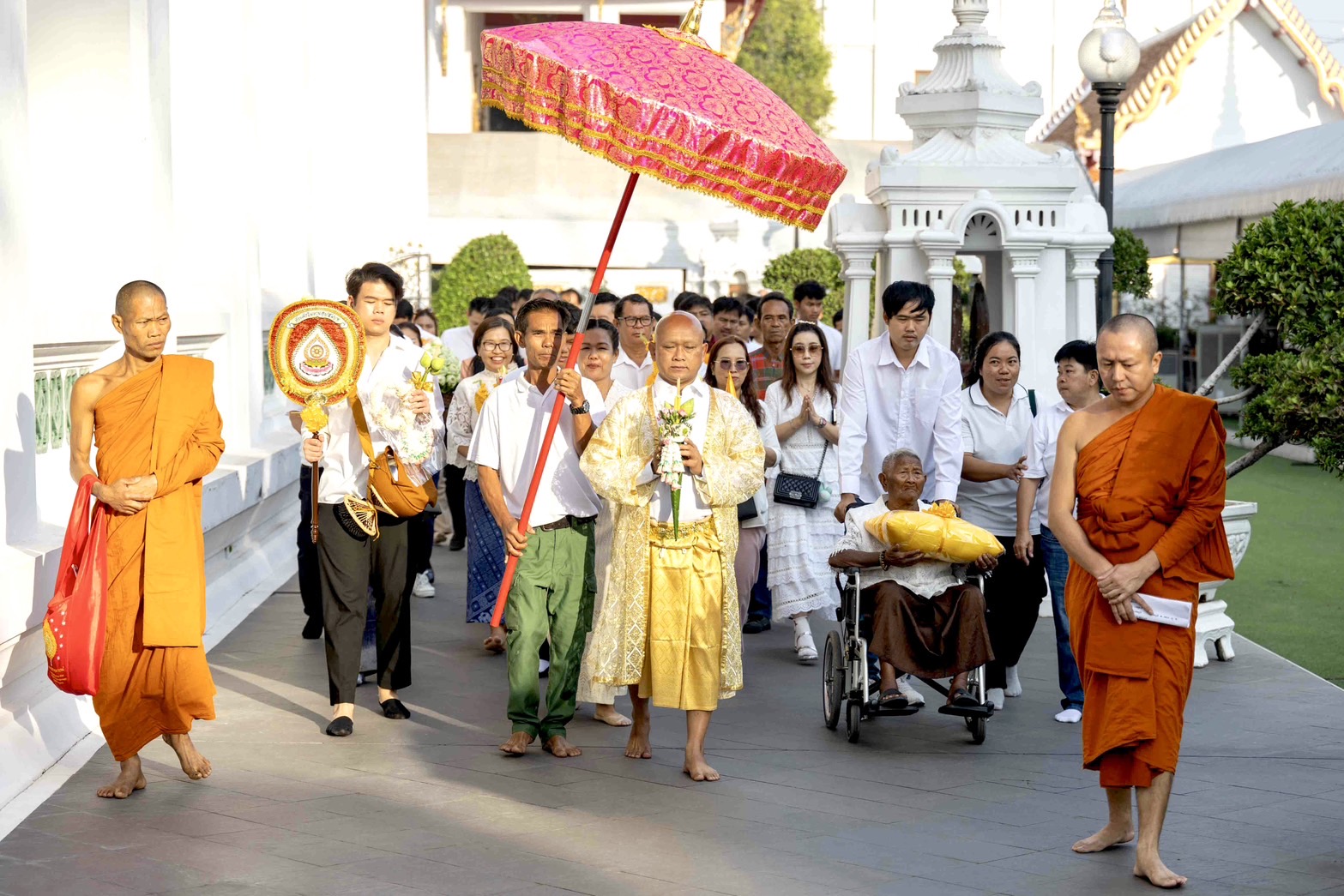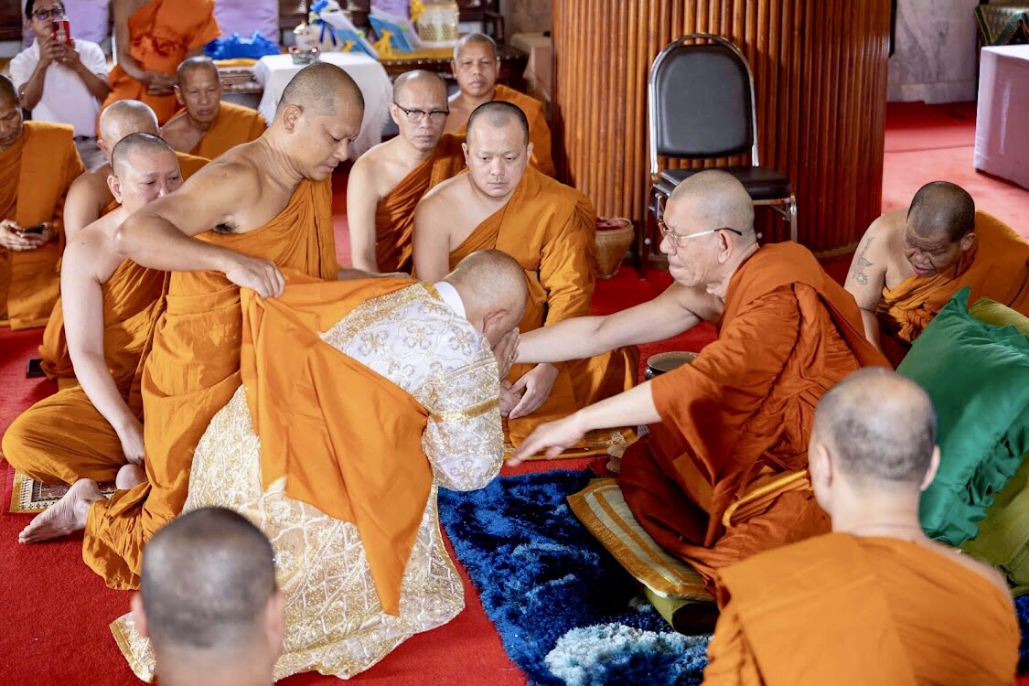 จากนั้นเวลา 08.00น. ตั้งขบวนแห่นาค นำนาคเข้าพิธีอุปสมบท ณ พัทธสีมาวัดหงส์รัตนาราม โดยมีพระธรรมวชิรเมธี (เจ้าคุณมีชัย) เจ้าคณะภาค 1 เจ้าอาวาสวัดหงส์รัตนารามราชวรวิหารราชวรวิหาร เป็น พระอุปัชฌาย์ ได้ตั้งฉายานายรัฐศักดิ์ทางธรรมว่า “มหาปุญโญ” มีความหมายว่า “ผู้มีบุญมาก”