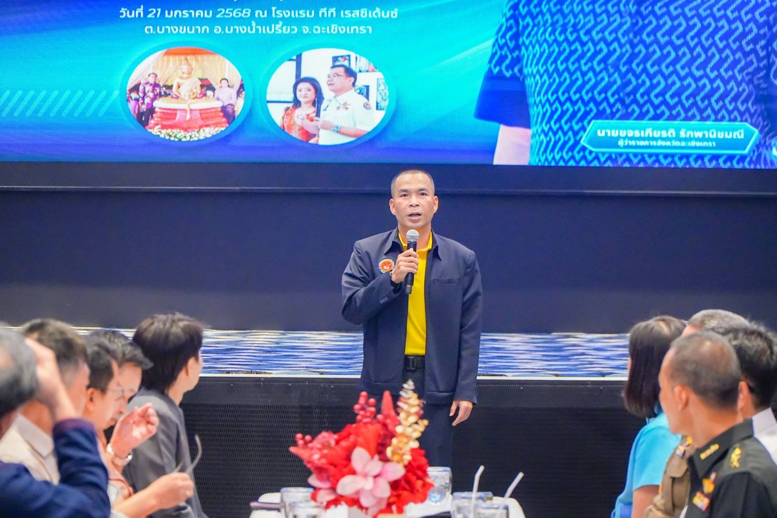 วันที่ 21 มกราคม 2568 ที่ โรงแรมทีที เรสซิเดนซ์ ตำบลบางขนาก อำเภอบางน้ำเปรี้ยว จังหวัดฉะเชิงเทรา นายขจรเกียรติ รักพานิชมณี ผู้ว่าราชการจังหวัดฉะเชิงเทรา เป็นประธานเปิดโครงการพัฒนาเครือข่ายสื่อมวลชน เพื่อสนับสนุนการพัฒนาจังหวัดฉะเชิงเทรา กิจกรรมการสัมมนา “ผู้ว่าพบสื่อมวลชน สานสัมพันธ์สร้างการรับรู้สู่ประชาชน” โดยนางปิติมา รักพานิชมณี นายกเหล่ากาชาดจังหวัดฉะเชิงเทรา พันเอก เฉลิมพล ประเสริฐกุล รองผู้อำนวยการรักษาความมั่นคงภายในจังหวัดฉะเชิงเทรา นายอำเภอบางน้ำเปรี้ยว หัวหน้าส่วนราชการ และพี่น้องสื่อมวลชนในจังหวัดฉะเชิงเทราเข้าร่วมงาน