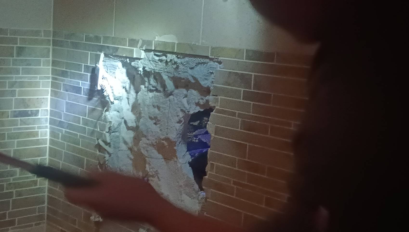 หลังจากที่เจ้าหน้าที่พบงูเหลือมโผล่หางออกมาจากฝ้าเพดานบริเวณห้องน้ำสระว่ายน้ำเมื่อวันก่อน แต่ไม่สามารถจับตัวได้ ล่าสุดได้รับแจ้งว่า งูตัวดังกล่าวได้เลื้อยหลบเข้าไปในช่องเสาของห้องน้ำ เจ้าหน้าที่จึงตัดสินใจทุบกำแพงเพื่อจับงู โดยใช้เวลานานกว่า 30 นาที จึงสามารถนำตัวงูออกมาได้สำเร็จ