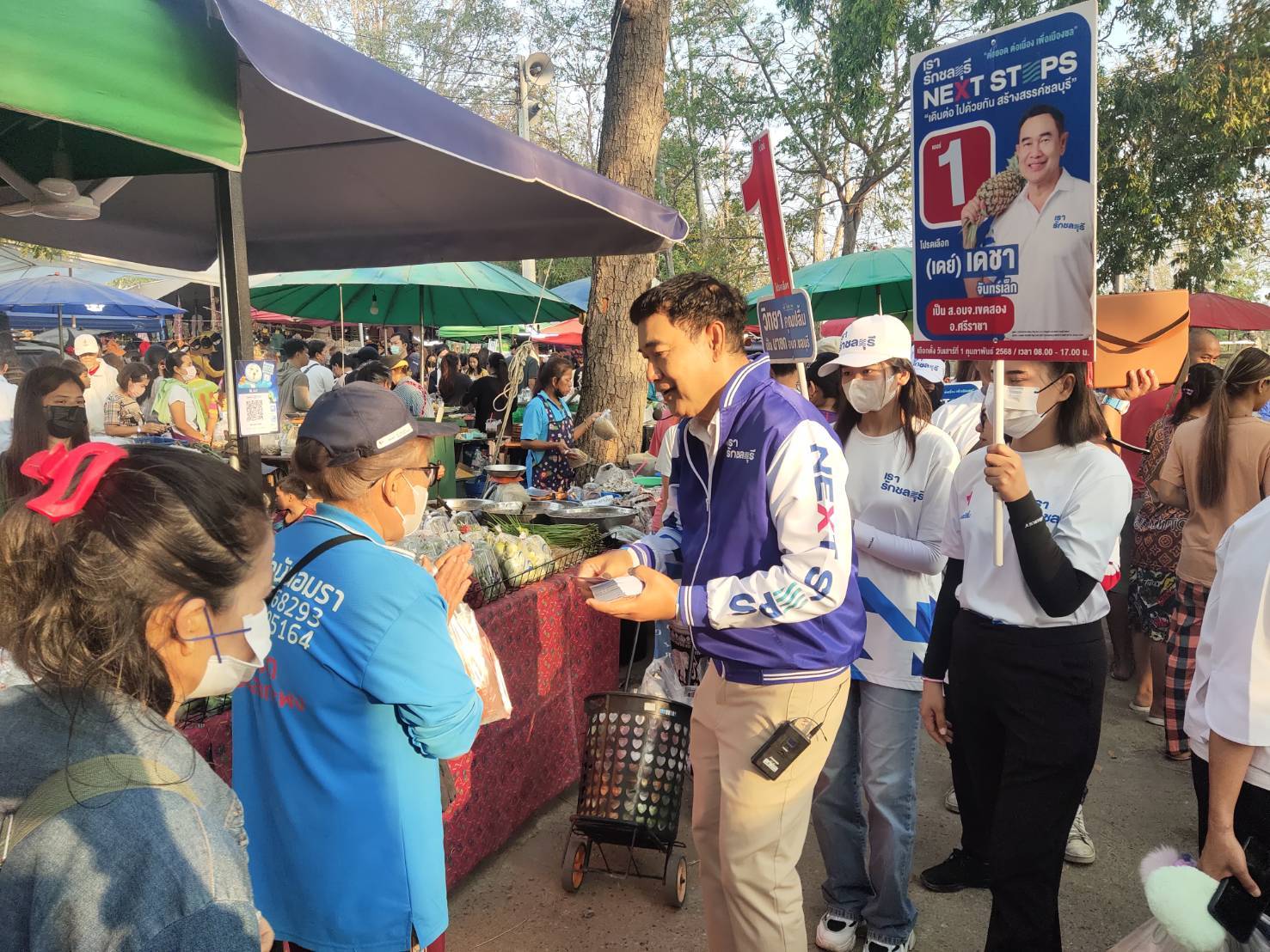 อดีตประธานสภา อบจ.ชลบุรี “เดชา จันทร์เล็ก” ผู้สมัคร ส.อบจ.ชลบุรี เขต 2 เบอร์ 1 ลงพื้นที่หาเสียง ที่ตลาดนัดหนองค้อ พบปะพ่อค้า-แม่ค้า ที่มาจับจ่ายซื้อของและพบปะขอคะแนนเสียงผู้สูงอายุบ้านโค้งดารา