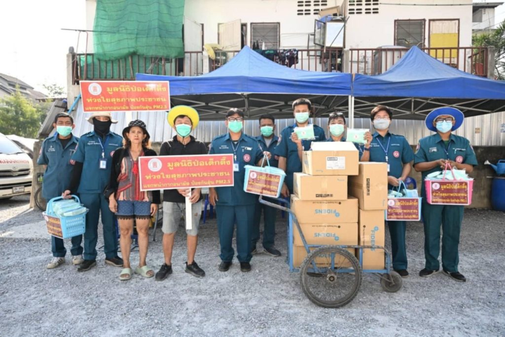 ตามที่ประเทศไทยเกิดมหันตภัยค่าฝุ่น PM2.5 เกินมาตรฐานในหลายพื้นที่ โดยเฉพาะอย่างยิ่งกรุงเทพมหานครและจังหวัดใกล้เคียง ส่งผลกระทบแก่ประชาชนในพื้นที่เป็นอย่างยิ่ง คณะกรรมการมูลนิธิป่อเต็กตึ๊ง มอบหมายให้นายอรัณย์ โตทวด ผู้จัดการใหญ่มูลนิธิฯ จัดทีมฝ่ายสังคมสงเคราะห์ เร่งนำทีมลงพื้นที่แจกจ่ายหน้ากากอนามัยให้กับประชาชนในพื้นที่ 10 เขต กรุงเทพมหานคร