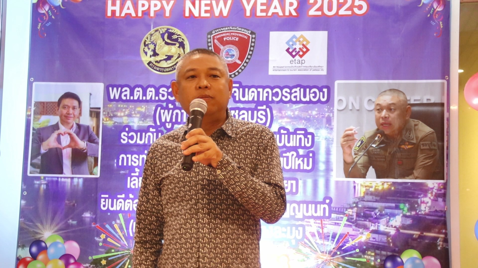 พล.ต.ต.ธวัชเกียรติ จินดาควรสนอง ผบก.ภ.จว.ชลบุรี ได้กล่าวเปิดงานพร้อมขอบคุณสื่อมวลชนที่ร่วมนำเสนอข่าวของเจ้าหน้าที่ตำรวจตลอดปีที่ผ่านมาและจะร่วมกันทำงานกับสื่อ เพื่อประชาชนและนักท่องเที่ยว ได้รับความปลอดภัยและเชื่อมั่นด้านการท่องเที่ยวในชลบุรีและเมืองพัทยา พร้อมทั้งนี้ ตำรวจภูธรชลบุรี ได้ขับเคลื่อน นโยบายรัฐบาล นโยบายตำรวจแห่งชาติและนโยบาย ตำรวจภูธร ภาค 2 ในเรื่องการแก้ไขปัญหายาเสพติด ปัญหาอาชญากรรมข้ามชาติ และปัญหาต่างด้าวผิดกฎหมาย ที่เข้ามาสร้างผลกระทบสร้างความเชื่อมั่นในการท่องเที่ยว ในพื้นที่เมืองพัทยา