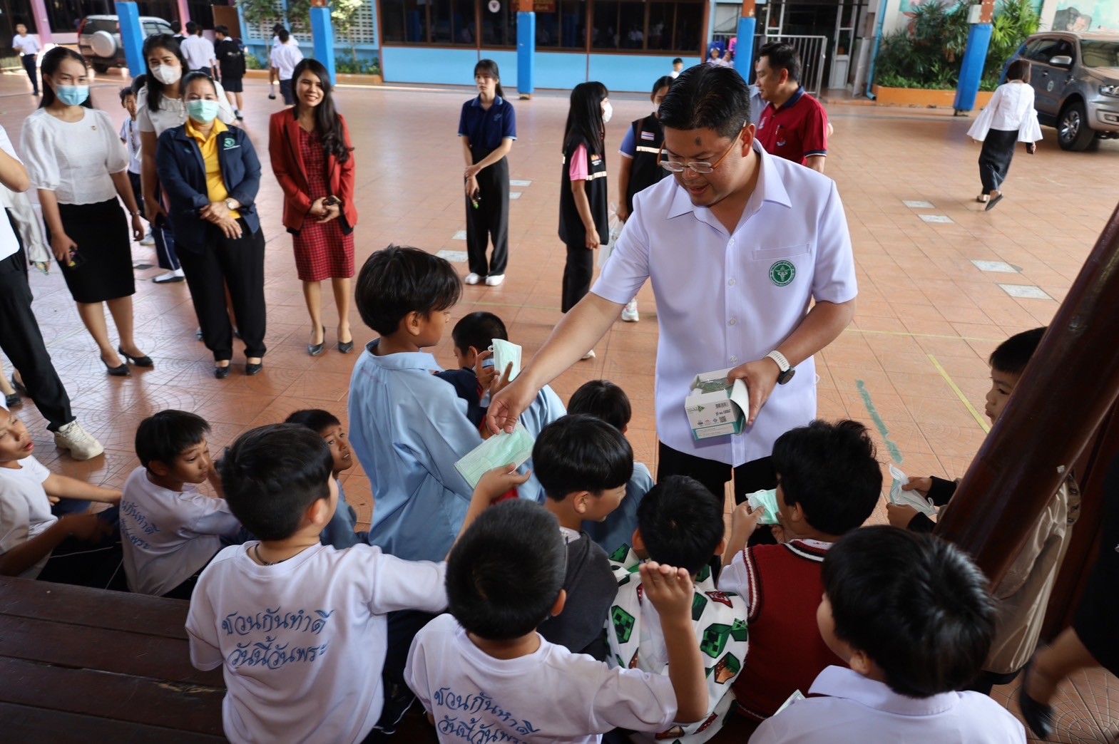 นายแพทย์สาธารณสุขจังหวัดพระนครศรีอยุธยา ห่วงใยสุขภาพเด็กนักเรียน ครู อาจารย์ และบุคลากรทางการศึกษา ลงพื้นที่มอบหน้ากากอนามัย ให้คำแนะนำดูแลตนเอง ปลอดภัยจากฝุ่น PM2.5