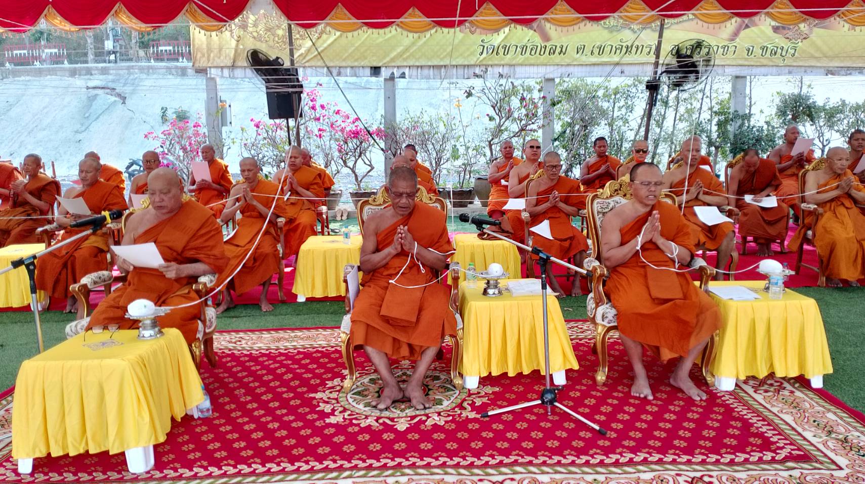 วัดเขาช่องลม ตำบลเขาคันทรง อำเภอศรีราชา จัดพิธีเจริญพระพุทธมนต์ เตาหลอมหุ่นขี้ผิ้งราหูส่วนหน้า (แท่นประทับท่านทองล้น ปางปาฏิหาริย์) ที่เตรียมเททองหล่อในวันพรุ่งนี้ 29 มกราคม 2568 เวลา 16.09 น.โดยมีพระครูสาทรวรกิตติ์,พระครูปลัดวัณณวัฒน,พระครูสภัทรธรรมธาดา และคณะสงฆ์วัดเขาช่องลม เจริญพระพุทธมนต์อาฏานาฏิยสูตร