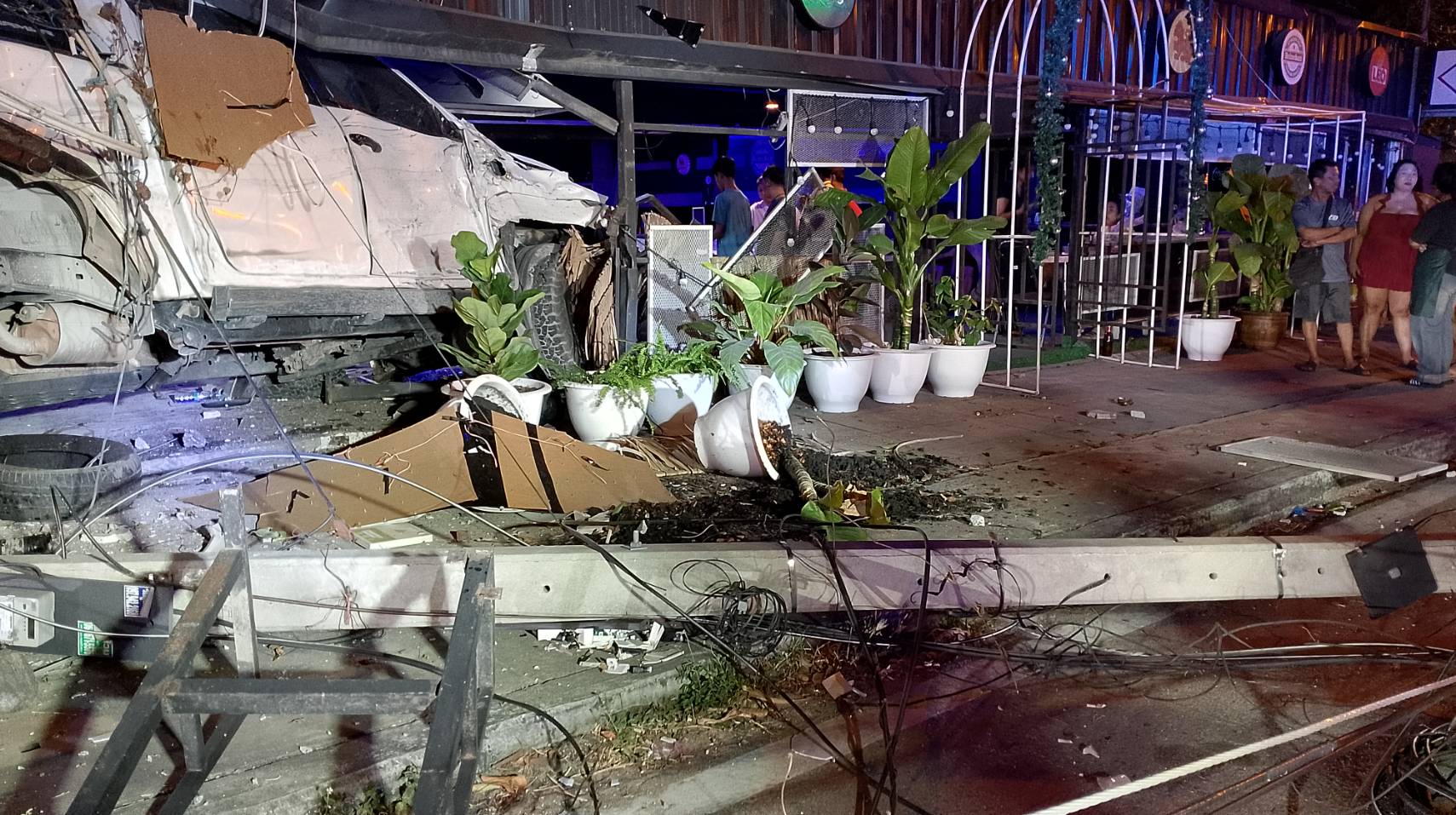 เมื่อเวลา 00.30 น. (29 ม.ค. 2568) พ.ต.ท.นพดล วันดี สารวัตรเวรสอบสวนสภ.หนองขาม ได้รับแจ้งมีรถยนต์กระบะแหกโค้งพุ่งชนเสาไฟฟ้าจนหักโค่นแล้วพุ่งเข้าร้านอาหารริมถนนจนได้รับบาดเจ็บ ร้านอาหารเสียหาย เหตุเกิดใกล้กับทางเข้าวัดเขาดินวนาราม หมู่3 ตำบลหนองขาม อำเภอศรีราชาให้ไปสอบสวน หลังรับแจ้งจึงประสานอาสาหน่วยกู้ภัยเพียวเยี้ยงไท้ศรีราชาออกตรวจสอบร่วม