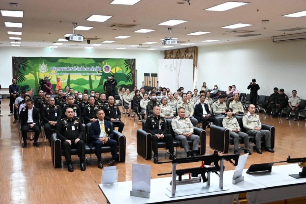 วันที่ 6 ก.พ.2568 ศอว.ศอพท. ร่วมกับ กรมอุทยานแห่งชาติ สัตว์ป่า และพันธุ์พืช ได้จัดกิจกรรมส่งเสริมความร่วมมือด้านการพัฒนาอุตสาหกรรมป้องกันประเทศ ณ ห้องประชุมชั้น 4 อาคารอเนกประสงค์ กรมอุทยานแห่งชาติ สัตว์ป่าและพันธุ์พืช โดยมี พล.ท.ปวริศ ปั้นทอง ผบ.ศอว.ศอพท. และ นายนรินทร์ ประทวนชัย รองอธิบดีกรมอุทยานฯ เป็นประธานร่วม พร้อมด้วยคณะนายทหารของ ศอพท. /คณะนายทหารของ ศอว.ฯ /ผู้บริหารของ สทป. และผู้บริหารของกรมอุทยานฯ ร่วมในกิจกรรมความร่วมมือ ซึ่งกรมอุทยานฯ ได้ลงนามสั่งซื้ออาวุธ ปลย.ขนาด 9 มม. (NIN9) แบรนด์ คชสีห์ ของ ศอว.ฯ จำนวน 350 กระบอก เพื่อใช้ในภารกิจรักษาทรัพยากรธรรมชาติของกรมอุทยานแห่งชาติ สัตว์ป่าและพันธุ์พืช