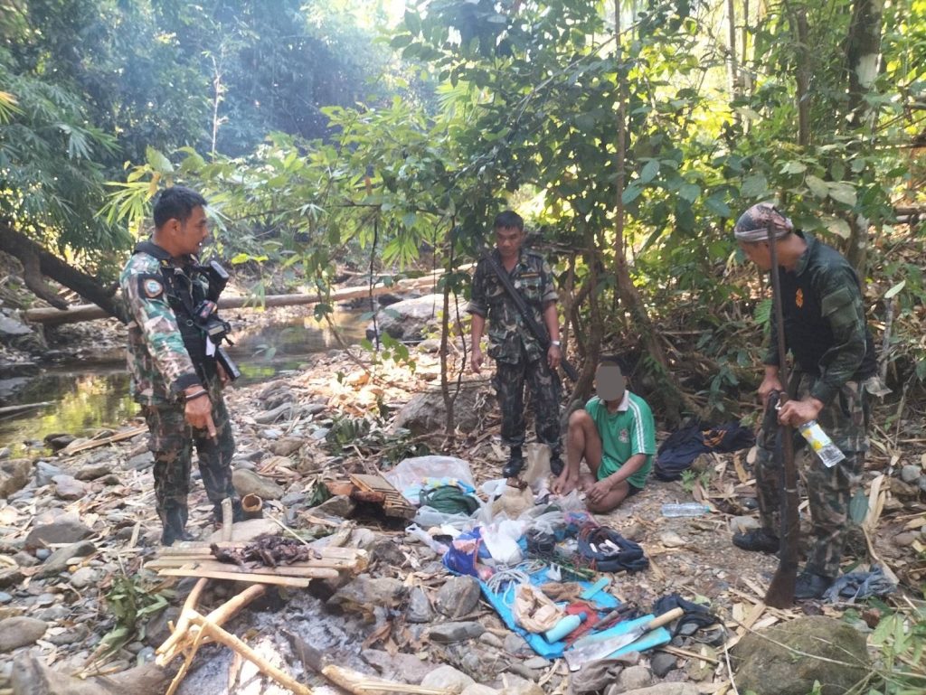 เมื่อเวลา 09.30 น. วันที่ 14 กุมภาพันธ์ 2568 นายชุติเดช กมนณชนุตม์ ผู้อำนวยการสำนักบริหารพื้นที่อนุรักษ์ที่ 3 (บ้านโป่ง) เปิดเผยว่า ได้รับรายงานจากนายยุทธพงค์ ดำศรีสุข หัวหน้าอุทยานแห่งชาติทองผาภูมิ ว่าชุดลาดตระเวนของอุทยานฯ ได้จับกุมผู้ต้องหา 1 ราย ในข้อหาลักลอบขุดแร่ทองคำและล่าสัตว์ป่า การจับกุมครั้งนี้เป็นไปตามนโยบายของกระทรวงทรัพยากรธรรมชาติและสิ่งแวดล้อม ที่สั่งการให้เข้มงวดป้องกันและปราบปรามการกระทำผิดกฎหมายว่าด้วยการป่าไม้ เจ้าหน้าที่หน่วยพิทักษ์อุทยานฯ ทภ.6 (โป่งช้าง) ได้ลาดตระเวนในพื้นที่เสี่ยงการลักลอบทำเหมืองทองคำและล่าสัตว์ป่าบริเวณห้วยสะมะทอ ป่าปิล๊อกคี่ หมู่ที่ 4 ตำบลปิล๊อก อำเภอทองผาภูมิ จังหวัดกาญจนบุรี ในเขตอุทยานแห่งชาติทองผาภูมิ พิกัด 47P 0430645E 1635288 จากการตรวจสอบพบชาย 1 ราย กำลังตั้งแคมป์อยู่บริเวณลำห้วย พร้อมอุปกรณ์ร่อนแร่ทองคำ และซากสัตว์ป่าที่ถูกล่า เจ้าหน้าที่จึงแสดงตัวเข้าจับกุม ทราบชื่อภายหลังคือนายกอรา ไม่มีนามสกุล อายุ 51 ปี เชื้อชาติกะเหรี่ยง ไม่มีสัญชาติไทย