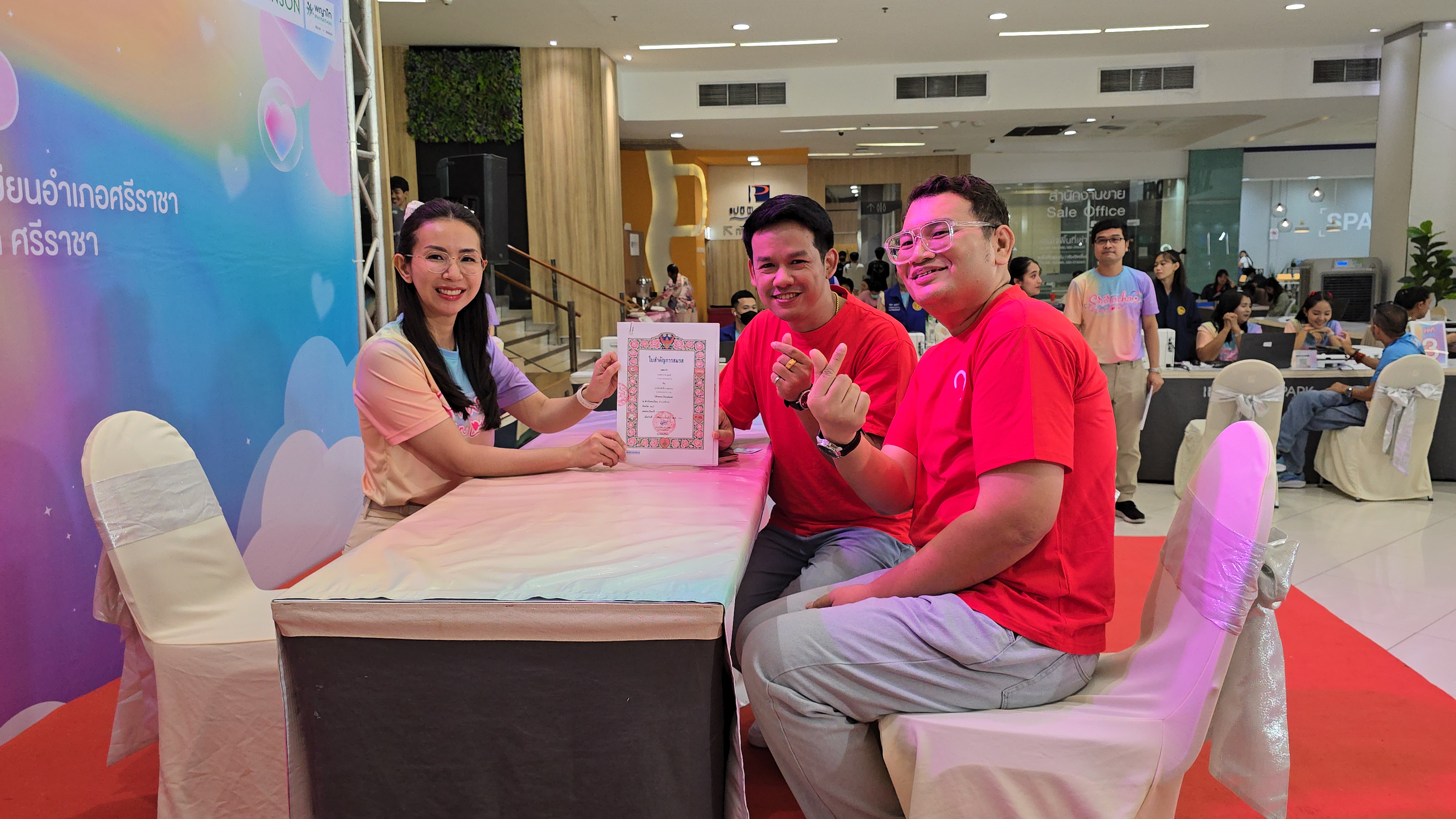สองหนุ่ม LGBTQ ถือฤกษ์วันแห่งความรัก เดินจูงมือไปจดทะเบียนสมรสที่ที่ว่าการอำเภอศรีราชาเป็นคู่แรก หลังคบหาดูใจกันมากว่า 5 ปี โดยตกลงปลงใจแต่งงานใช้ชีวิตคู่อยู่ด้วยกันมาก่อนหน้านี้ไปไม่นาน