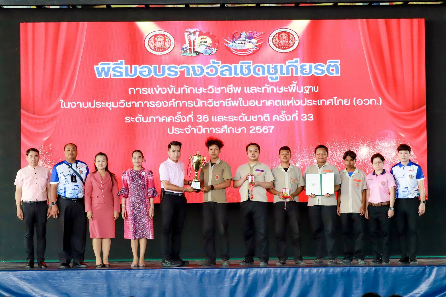 วันอังคารที่ 18 กุมภาพันธ์ 2568 ว่าที่พันตรี ดร.วัชรพล ลักษณลม้าย ผู้อำนวยการ(วิทยฐานะเชี่ยวชาญ) วิทยาลัยเทคนิคฉะเชิงเทรา – ผู้อำนวยการสำนักงานอาชีวศึกษาจังหวัดฉะเชิงเทรา – ปฎิบัติหน้าที่ ผู้อำนวยการศูนย์อาชีวศึกษาทวิภาคี สำนักงานคณะกรรมการการอาชีวศึกษา .. เป็นประธานในพิธีมอบรางวัลเชิดชูเกียรติ แก่นักเรียนนักศึกษา วิทยาลัยเทคนิคฉะเชิงเทรา ที่เข้าร่วมการแข่งขัน ทักษะวิชาชีพ และทักษะพื้นฐาน ในงานประชุมวิชาการองค์การนักวิชาชีพในอนาคตแห่งประเทศไทย (อวท.) ระดับภาคครั้งที่ 36 และระดับชาติครั้งที่ 33 และจำปีการศึกษา 2567