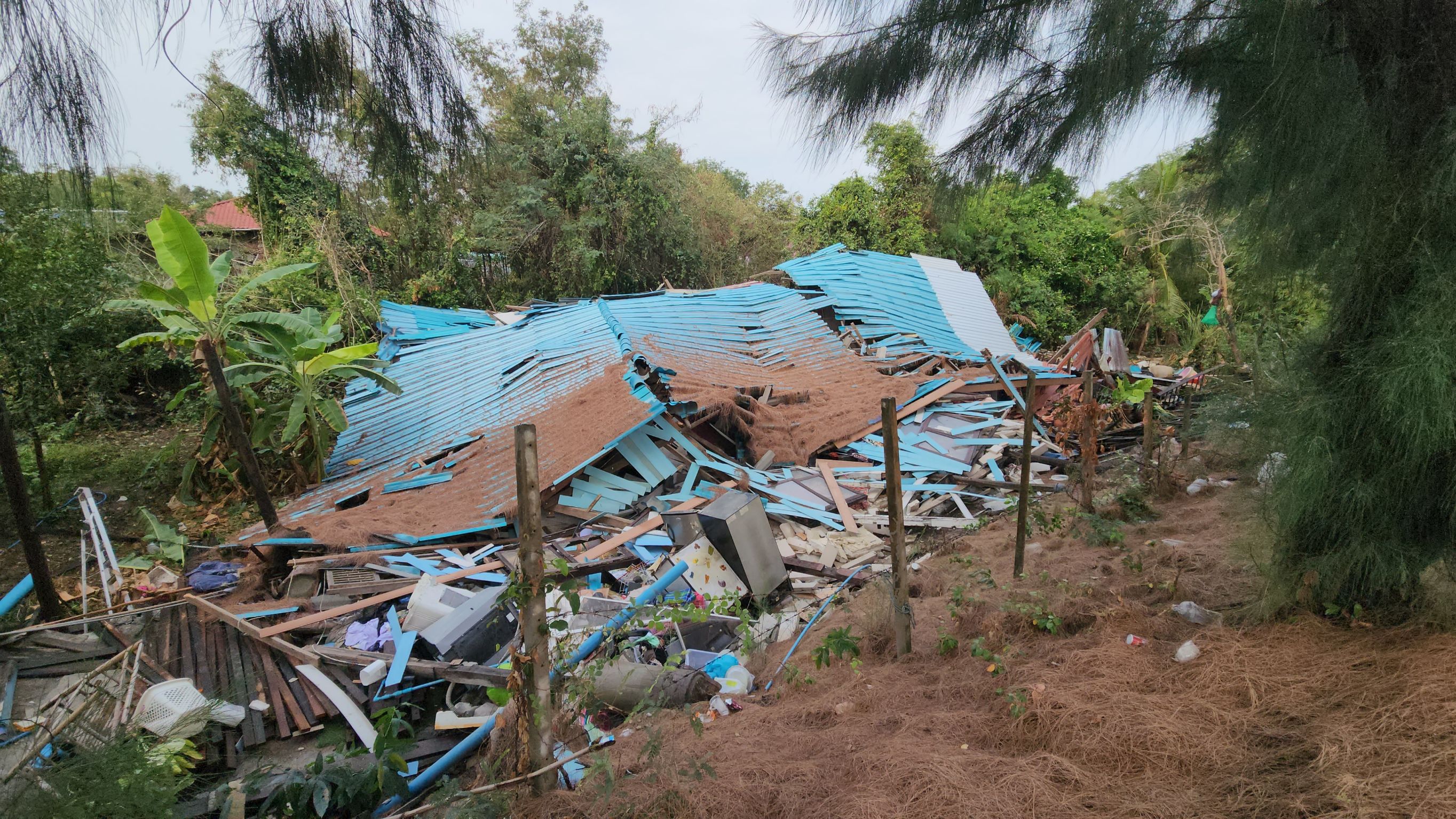 สอบถาม นาง สำรวย มีสมผลอายุ 62 ปี เจ้าของบ้าน อยู่ในอาการตกใจเล่าเหตุการณ์ ให้ฟังว่า ตอนนั้นตนเองได้นอนอยู่บนบ้านกับหลานอีก 3 คนขณะนั้นเมื่อช่วงเช้ามืดมีฝนตกลงมาอย่างหนัก พอตนอยู่ภายในบ้านก็ได้ยินเสียงไม้ลั่นสักพักบ้างก็เกิดถล่มลงมาทันที จากนั้นตนเองก็ตั้งสติรีบไปอุ้มหลานที่นอนอยู่ในห้องเด็กอีก 3 คน ค่อยๆมุดตะเกียตะกาย ออกมาจากซากของบ้านได้อย่างปลอดภัย