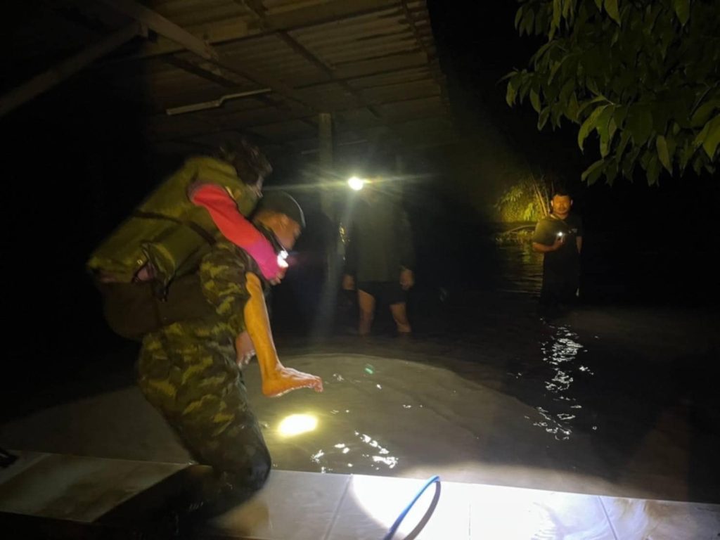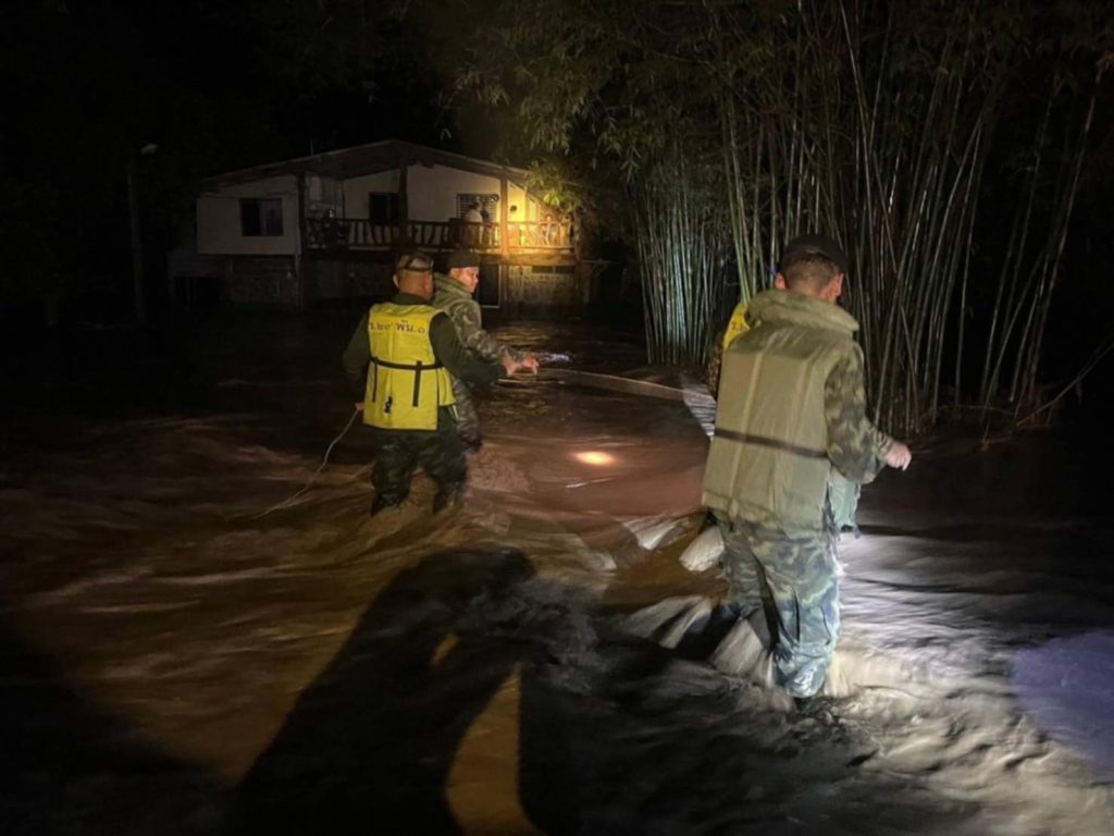 เมื่อวันที่ 21 ก.พ.68 พลตรี อัษฎาวุธ ปันยารชุน ผู้บัญชาการกองพลทหารราบที่ ในฐานะ ผู้อำนวยการศูนย์บรรเทาสาธารณภัย กองพลทหารราบที่ 9 เปิดเผยว่า ได้รับแจ้งจากชาวบ้านในพื้นที่ บ้านบ้องตี้ อำเภอไทรโยค กาญจนบุรี ว่ามีฝนตกหนักในพื้นที่อย่างต่อเนื่อง จึงได้สั่งการให้ พันเอก พรรณศักย์ เพรียวพานิช ผู้บังคับการกรมทหารราบที่ 29 ในฐานะ ผู้อำนวยการศูนย์บรรเทาสาธารณภัย กรมทหารราบที่ 29 จัดกำลังพลเฝ้าระวังน้ำป่าไหลหลากในพื้นที่รับผิดชอบของหน่วยอย่างใกล้ชิด ในเวลาต่อมาพบว่าปริมาณน้ำป่าเริ่มไหลแรงมากขึ้น จึงสั่งการให้ พันเอก ปิยะเณศร์ ภัทรศาศวัตวงษ์ รองผู้บังคับหน่วยเฉพาะกิจลาดหญ้า กองกำลังสุรสีห์ จัดกำลังพลเจ้าหน้าที่ทหาร หน่วยเฉพาะกิจลาดหญ้า กองกำลังสุรสีห์ พร้อมด้วยกำลังพลจิตอาสาพระราชทาน ลงพื้นที่เฝ้าระวังสถานการณ์น้ำท่วม ในพื้นที่ หมู่ 2 บ้านบ้องตี้ล่าง ตำบลบ้องตี้ อำเภอไทรโยค จังหวัดกาญจนบุรี อย่างใกล้ชิด จนกระทั่งเวลา 20.00 น. พบน้ำป่าไหลหลากท่วมบ้านเรือนประชาชนในพื้นที่ บ้านบ้องตี้ อำเภอไทรโยค และพบถนนหลายเส้นถูกน้ำป่าพัดขาด จึงได้เร่งให้ความช่วยเหลือนำตัวประชาชนออกจากพื้นที่น้ำป่าไหลหลากด้วยความยากลำบาก