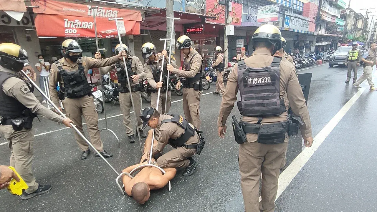 ผู้สื่อข่าวรายงานว่า เมื่อวานนี้ 25 ก.พ. 2568 ที่บริเวณหน้าห้างสรรพสินค้าสหไทย ย่านการค้าท่าวัง ต.ท่าวัง อ.เมือง จ.นครศรีธรรมราช พ.ต.อ.กิตติชัย ไกรนรา ผกก.สภ.เมืองนครศรีธรรมราช พร้อมด้วย พ.ต.ท.ธีระพล พุ่มชัย รอง ผกก.ป.สภ.เมืองนครศรีธรรมราช และกำลังตำรวจสายตรวจรถจักรยานยนต์ รถยนต์ 191 ตำรวจจราจร รวมทั้งสมาชิกเทศบาลนครนครศรีธรรมราช และเจ้าหน้าที่เทศกิจเทศบาล ร่วมฝึกซ้อมแผนเผชิญเหตุคนคลั่ง คนเชือน ผู้ป่วยจิตเวช เกิดอาการคลุ้มคลั่งข่มขู่ชอเงิน แม่ค้า พ่อค้า และนักท่องเที่ยวย่านท่าวังหากไม่ให้ใช้อาวุธมีดข่มขู่