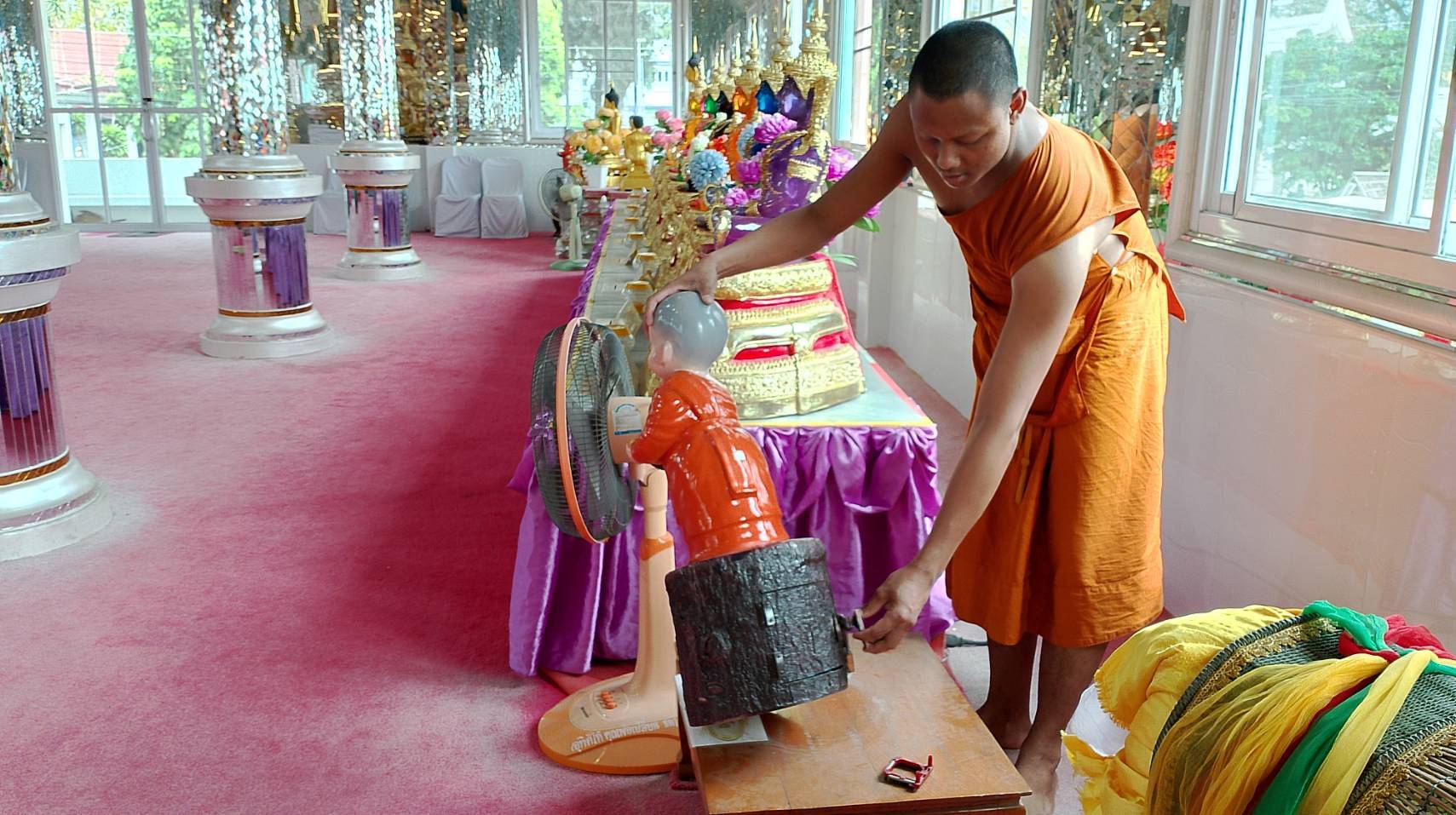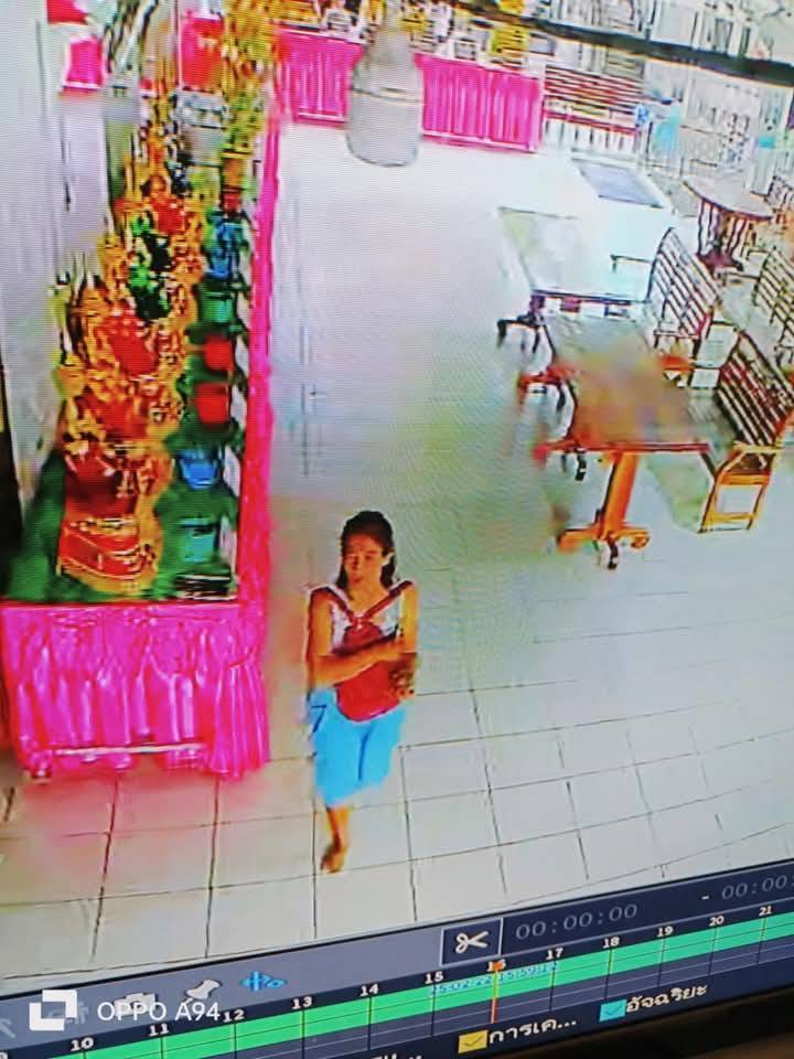 โดยได้สอบถามแม่ชีหนูได้เล่าให้ฟังว่าหญิงสาวคนดังกล่าวอายุประมาณ40ปีเศษ มาที่วัดโดยขี่รถจยย.มาแล้วขึ้นไปที่ศาลาพระแก้วมรกตก่อนแต่พบว่ามีแม่ชีที่ดูแลอยู่แล้วเดินลงมานั่งพูดคุยที่ศาลาจำน่ายดอกไม้ท้าวเวสสุวรรณแล้วนั่งพูดคุยและเลี้ยงกาแฟเย็นแม่ชีและพระที่นั่งพูดคุยกันอยู่แล้วก็บอกว่าจะไปสวดมนต์และนั่งสมาธิที่บนศาลาพระแก้วมรกตโดยหายไปกว่า2ชั่วโมงลงมาเกือบ4โมงเย็น โดยจะรู้ว่าตู้บริจาคถูกงัดก็วันเอาทิตย์แล้ว