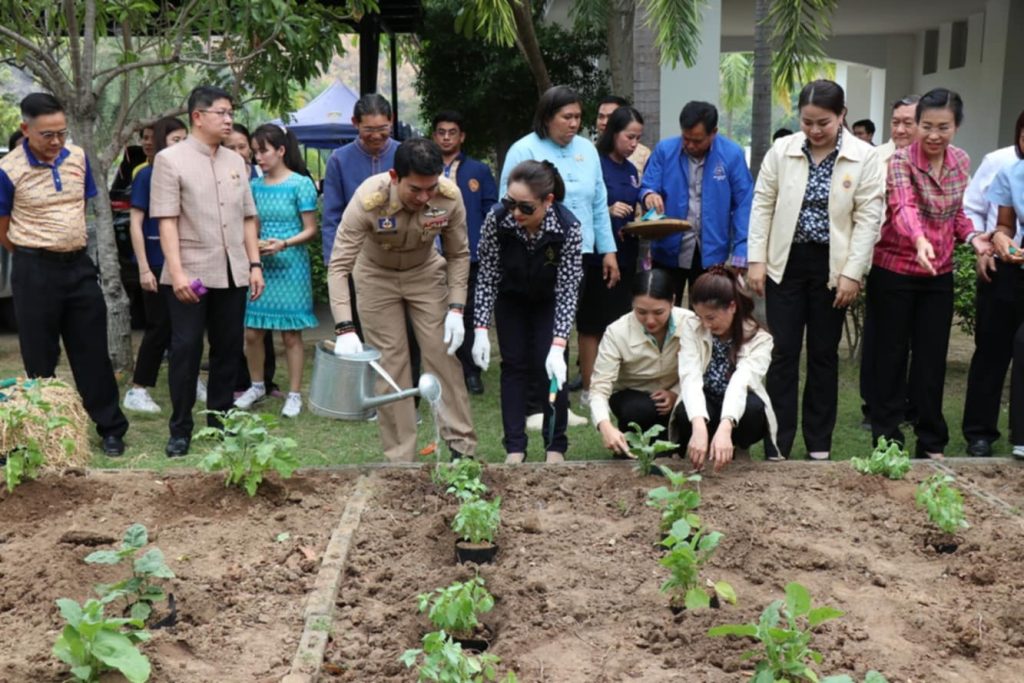 วันนี้ (27 กุมภาพันธ์ 2568) เวลา 15.30 น. นายอธิสรรค์ อินทร์ตรา ผู้ว่าราชการจังหวัดกาญจนบุรี เปิดจวนผู้ว่าฯ เป็นแปลงตัวอย่างปลูกผักสวนครัว ภายใต้แนวพระราชดำริของ สมเด็จพระกนิษฐาธิราชเจ้า กรมสมเด็จพระเทพรัตนราชสุดาฯ สยามบรมราชกุมารี เพื่อสร้างความมั่นคงทางอาหาร พร้อมขยายผลสู่ชุมชน กิจกรรมดังกล่าวได้รับความร่วมมือจาก นางสาวกิตติยา จึงรุ่งเจริญกิจ ประธานแม่บ้านมหาดไทยจังหวัดกาญจนบุรี พร้อมด้วยรองผู้ว่าราชการจังหวัด หัวหน้าส่วนราชการ สมาชิกชมรมแม่บ้านมหาดไทย และภาคีเครือข่ายในพื้นที่