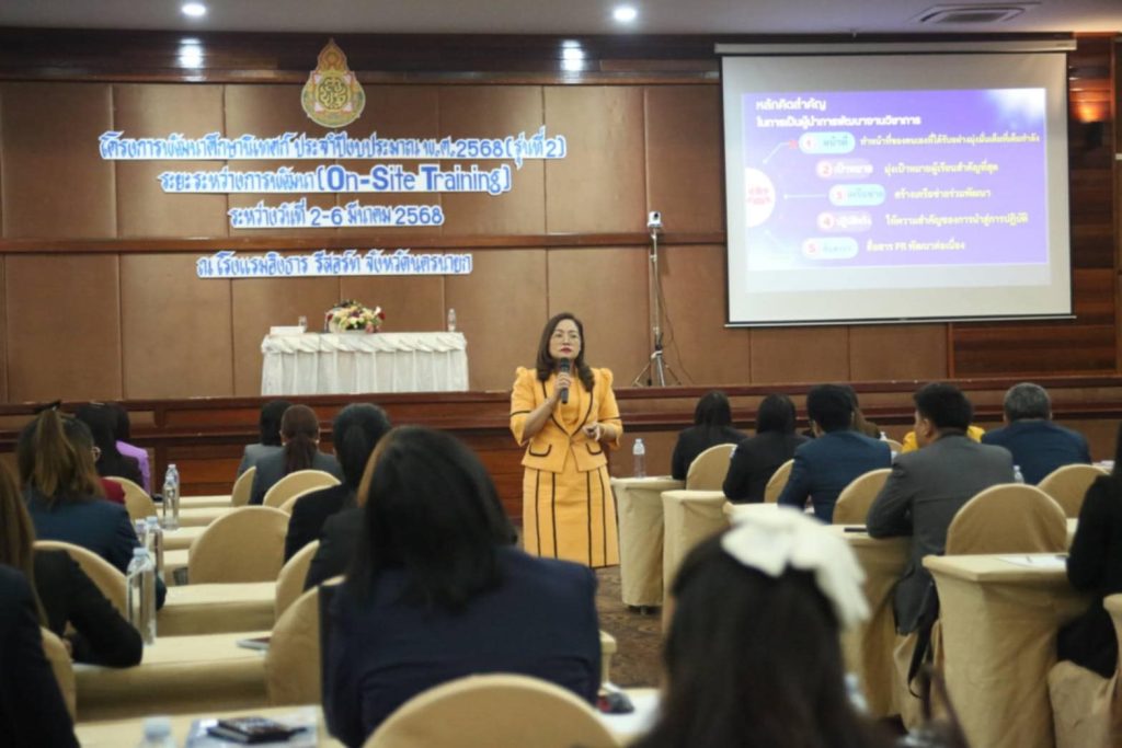 วันที่ 3 มีนาคม 2568 นางเกศทิพย์ ศุภวานิช รองเลขาธิการคณะกรรมการการศึกษาขั้นพื้นฐาน (รองเลขาธิการ กพฐ.) ได้รับมอบหมายจาก ว่าที่ร้อยตรี ธนุ วงษ์จินดา เลขาธิการคณะกรรมการการศึกษาขั้นพื้นฐาน ให้เป็นประธานในพิธีเปิดการพัฒนาศึกษานิเทศก์ ประจำปีงบประมาณ พ.ศ. 2568 (รุ่นที่ 2) โดยมี นางวัฒนาพร ระงับทุกข์ ที่ปรึกษาพิเศษ ศูนย์บริหารงานการพัฒนาศักยภาพบุคคลเพื่อความเป็นเลิศ ดร.เบญลักษณ์ น้ำฟ้า ที่ปรึกษาโครงการฯ นางอาทิตยา ปัญญา ผอ.ศูนย์บริหารงานการพัฒนาศักยภาพบุคคลเพื่อความเป็นเลิศ พร้อมด้วยศึกษานิเทศก์ผู้เข้ารับการพัฒนา 361 คน คณะศึกษานิเทศก์พี่เลี้ยง 46 คน วิทยากรผู้ทรงคุณวุฒิ ผู้บริหารระดับสูง และศึกษานิเทศก์ที่มีความรู้และประสบการณ์ด้านการนิเทศการศึกษา ทั้งในประจำการและนอกประจำการ เข้าร่วม ณ โรงแรมอิงธาร รีสอร์ท จังหวัดนครนายก