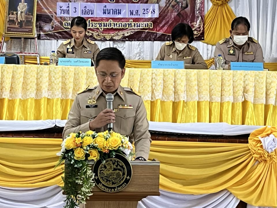 เมื่อวันที่ 3 มีนาคม 2568 ที่หอประชุมกำนัน-ผู้ใหญ่บ้าน อำเภอท่ามะกา จังหวัดกาญจนบุรี นางอรทัย วงศ์วัชรมงคล นายอำเภอท่ามะกา เป็นประธานการประชุมประจำเดือนของกำนันและผู้ใหญ่บ้าน โดยมี นายศิรัณ บุญสังข์ ปลัดอาวุโส ปลัดอำเภอ เจ้าหน้าที่ฝ่ายปกครอง หน่วยงานที่เกี่ยวข้อง และตัวแทนชมรมกำนัน-ผู้ใหญ่บ้านเข้าร่วม การประชุมครั้งนี้มีวัตถุประสงค์เพื่อแจ้งนโยบายและข้อราชการสำคัญ โดยนายอำเภอได้เน้นย้ำให้กำนัน-ผู้ใหญ่บ้าน เผยแพร่ข้อมูลข่าวสารไปยังประชาชน พร้อมกำชับให้ช่วยสอดส่องดูแลพื้นที่ หากพบการกระทำผิดกฎหมายที่อาจเป็นภัยต่อสังคม ขอให้แจ้งเบาะแสแก่ฝ่ายปกครองทันที ก่อนเริ่มการประชุม นายอำเภอได้นำกำนัน-ผู้ใหญ่บ้านทำพิธีไหว้พระและกล่าวคำปฏิญาณ จากนั้นได้ทำพิธีประดับเครื่องหมายให้แก่กำนันและผู้ใหญ่บ้านที่ได้รับการแต่งตั้ง พร้อมมอบประกาศชมเชยการปฏิบัติหน้าที่แก่เจ้าหน้าที่ตำบลหนองลานจำนวน 11 ราย