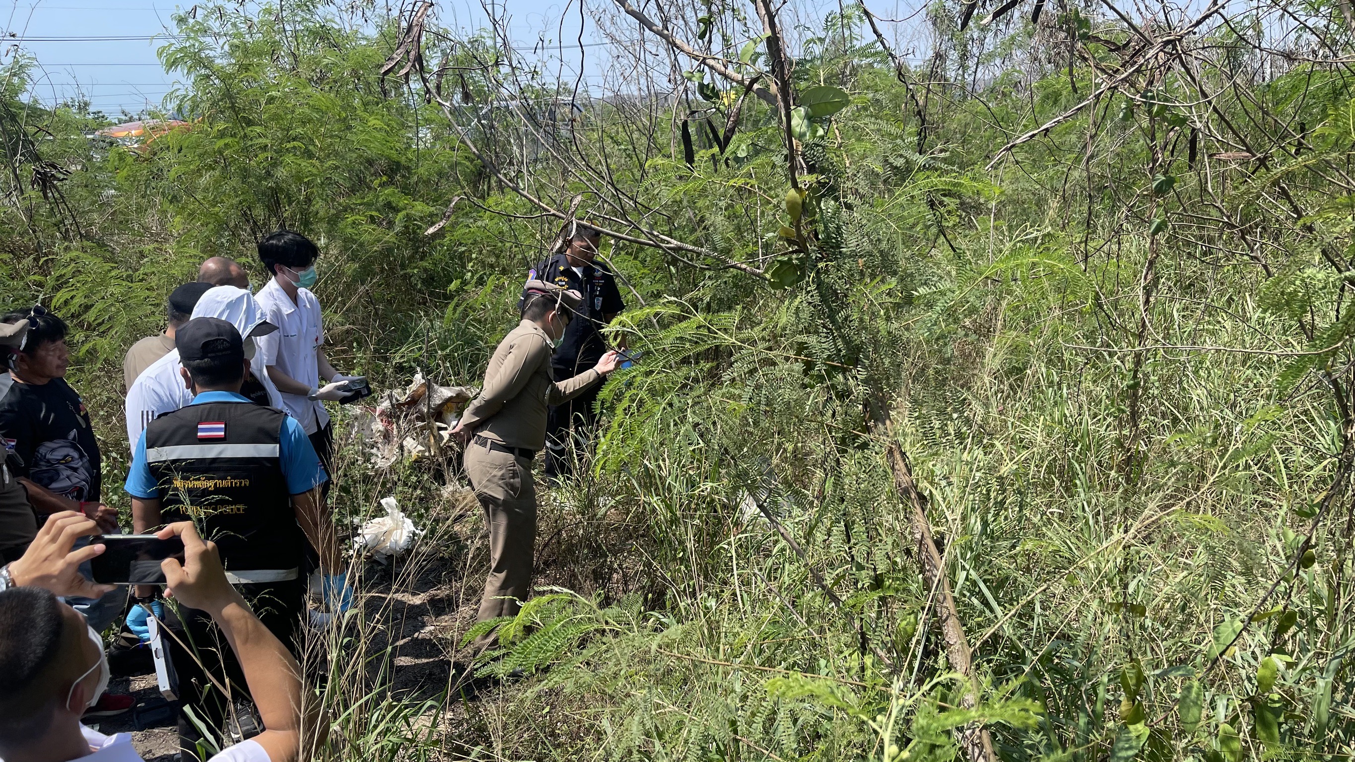 ที่เกิดเหตุ ห่างจากถนนทางสาย 331 ประมาณ 50 เมตร เบื้องต้นพบศพผู้เสียชีวิต ยังไม่ทราบเพศ อยู่ในป่ากระถิน โดยมีกระสอบปุ๋ยและถุงพลาสติก คลุมปิดบังร่าง ศพอยู่ในสภาพขึ้นอืด คาดเสียชีวิตมาแล้วหลายวัน ใกล้กับศพผู้เสียชีวิต พบกองขยะ คล้ายกับกองสายไฟที่ถูกปลอกแล้วนำลวดทองแดงออกไป โดยเบื้องต้นตำรวจมีการ กันพื้นที่ พร้อมทั้ง ประสานตำรวจกองพิสูจน์หลักฐาน 2 ชลบุรี เข้าร่วมตรวจสอบในที่เกิดเหตุ