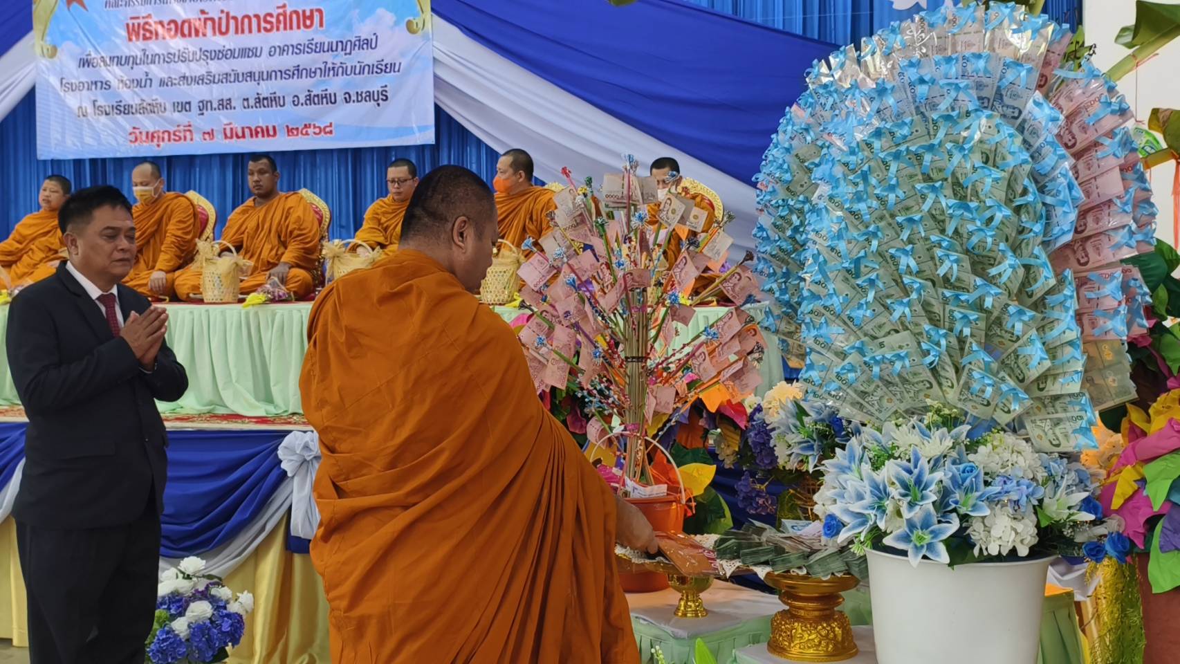 สำหรับปัจจัยที่ได้จากการร่วมเป็นเจ้าภาพทอดผ้าป่าการศึกษา เพื่อสมทบทุนในการปรับปรุงซ่อมแซมอาคารเรียนนาฏศิลป์ โรงอาหาร ห้องน้ำ และส่งเสริมสนับสนุนการศึกษาให้กับนักเรียนโรงเรียนสัตหีบ เบื้องต้น (ยอดยังไม่แน่นอน) ในครั้งนี้ เป็นจำนวนเงิน 560,000 บาท มอบให้กับโรงเรียนสัตหีบ โดย ผอ.พัทธนันท์ โกศัยกานนท์ ผอ.โรงเรียนสัตหีบ เขตฐานทัพเรือสัตหีบ และ ผอ.เพชราภรณ์ ยศศักดา ผอ.โรงเรียนสัตหีบ เขตกองเรือยุทธการ เพื่อดำเนินการตามวัตถุประสงค์ต่อไป