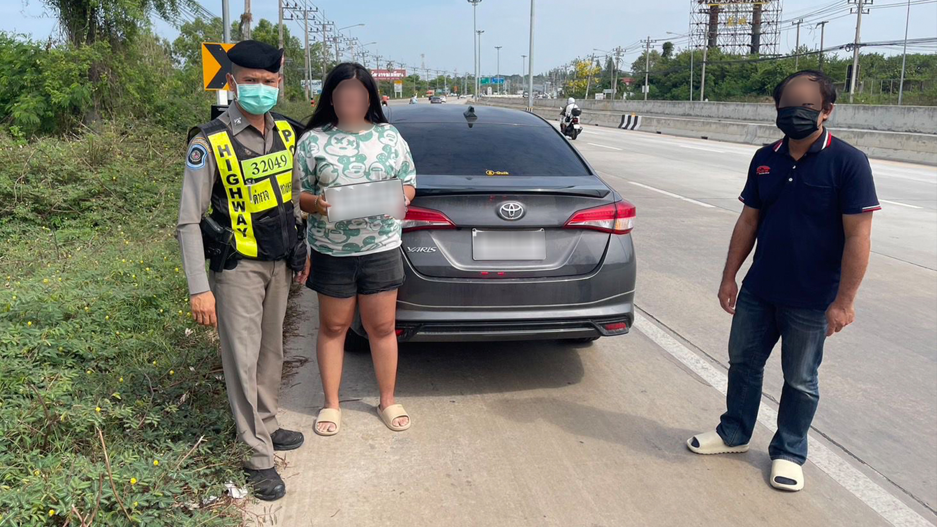 เปลี่ยนช่องทางการเดินรถอย่างกะทันหัน ก่อนขึ้นสะพาน จึงได้ส่งสัญญาณให้หยุดรถ เพื่อทำการตรวจสอบ และว่ากล่าวตักเตือน จากการตรวจสอบ พบ นายธนกฤต เป็นผู้ขับขี่ และและมี น.ส.กัลยกร นั่งด้านข้างคนขับ
