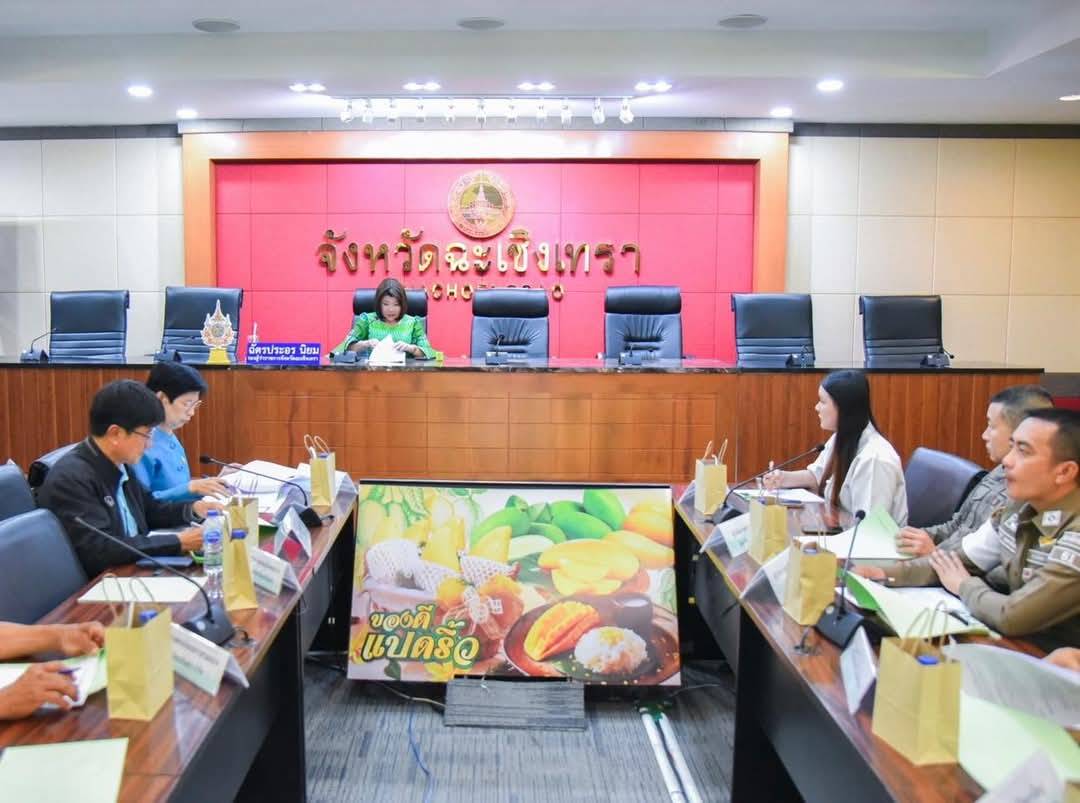 นางสาวฉัตรประอร นิยม รองผู้ว่าราชการจังหวัดฉะเชิงเทรา เป็นประธานการประชุมคณะกรรมการจัดงานวันมะม่วง และของดีเมืองแปดริ้ว ครั้งที่ 54 ประจำปี 2568 พร้อมด้วย นายดนัย ปัญจพิทยากุล เกษตรจังหวัดฉะเชิงเทรา, หัวหน้าส่วนราชการ และคณะกรรมการฯ