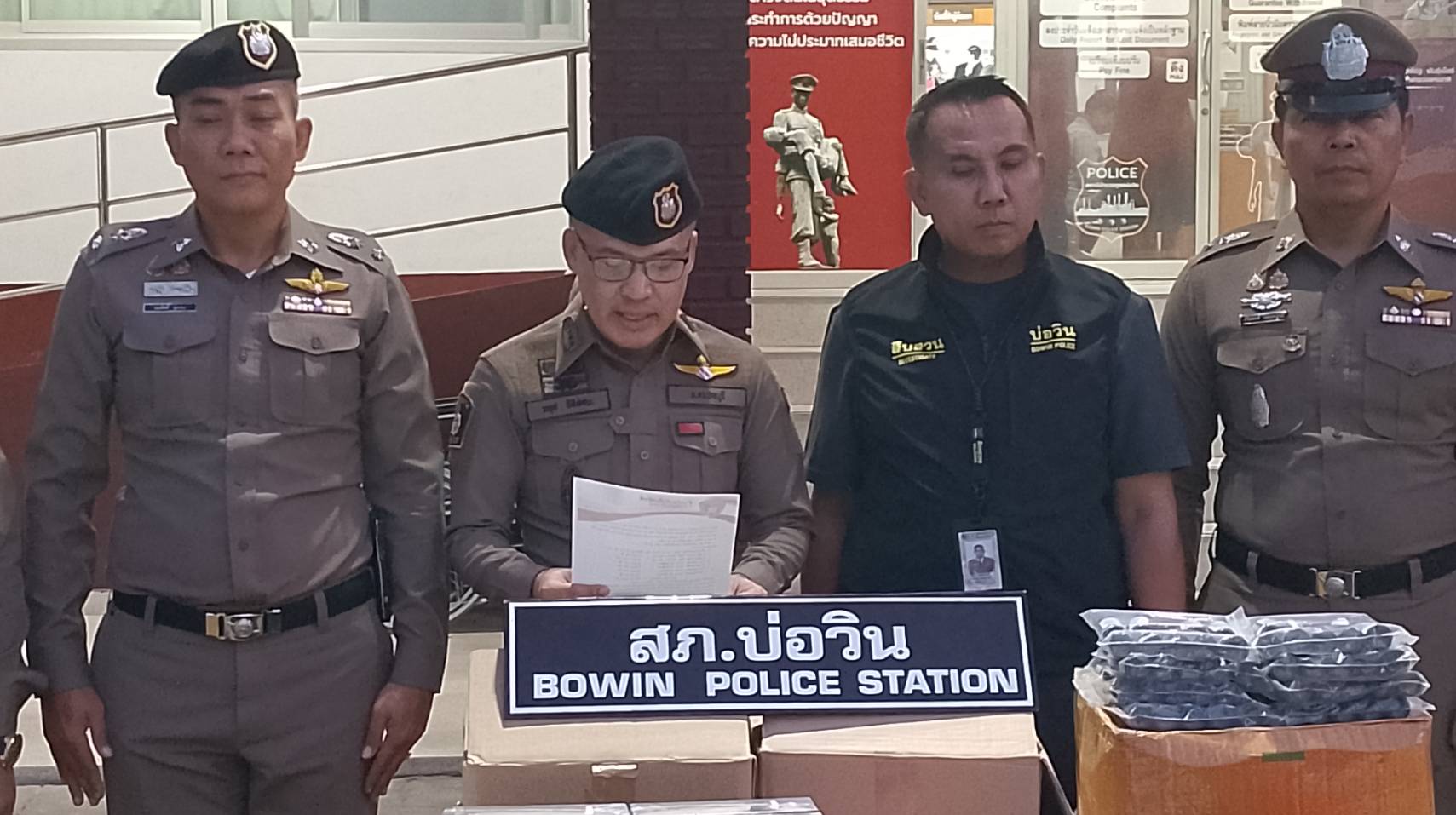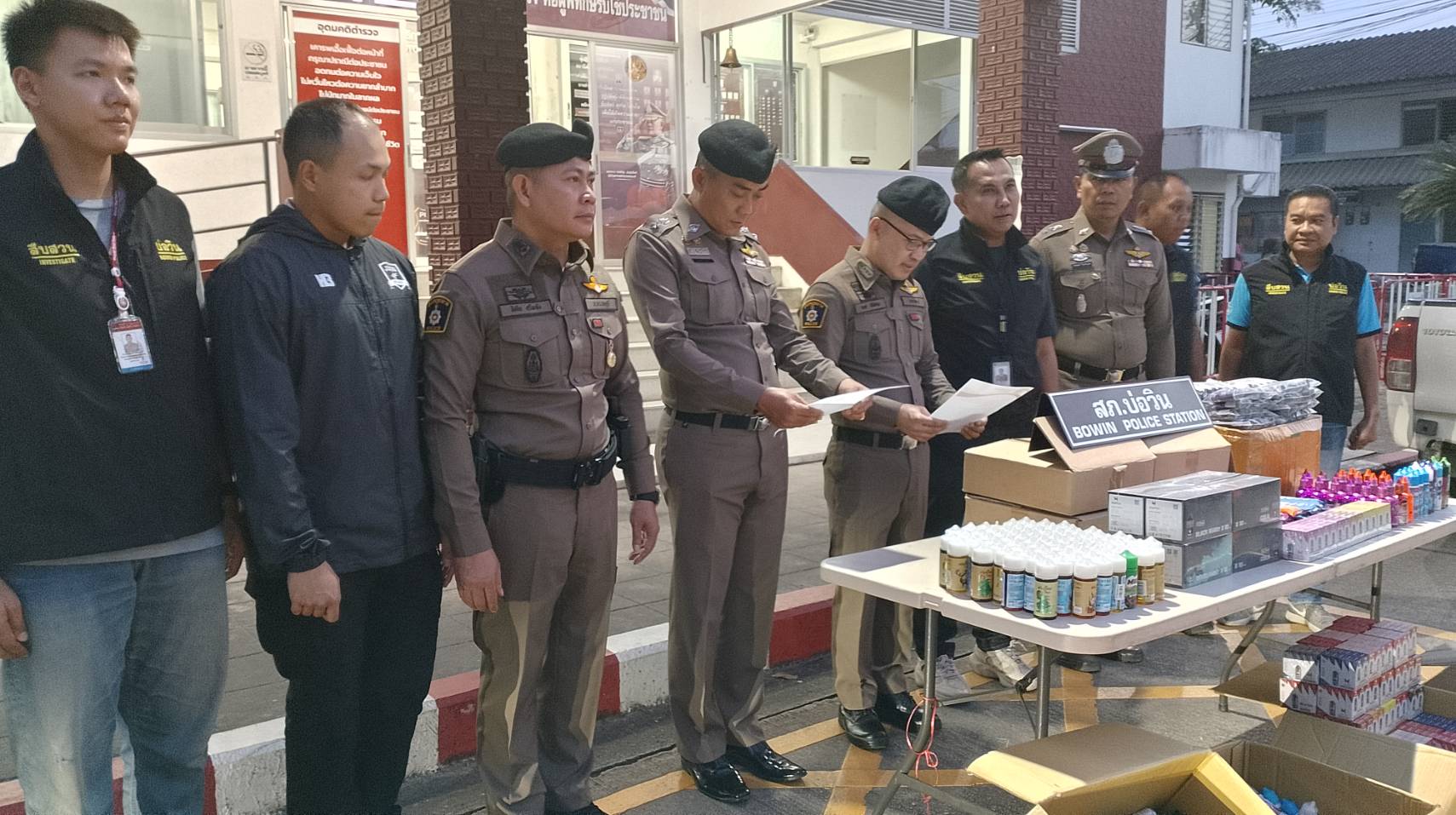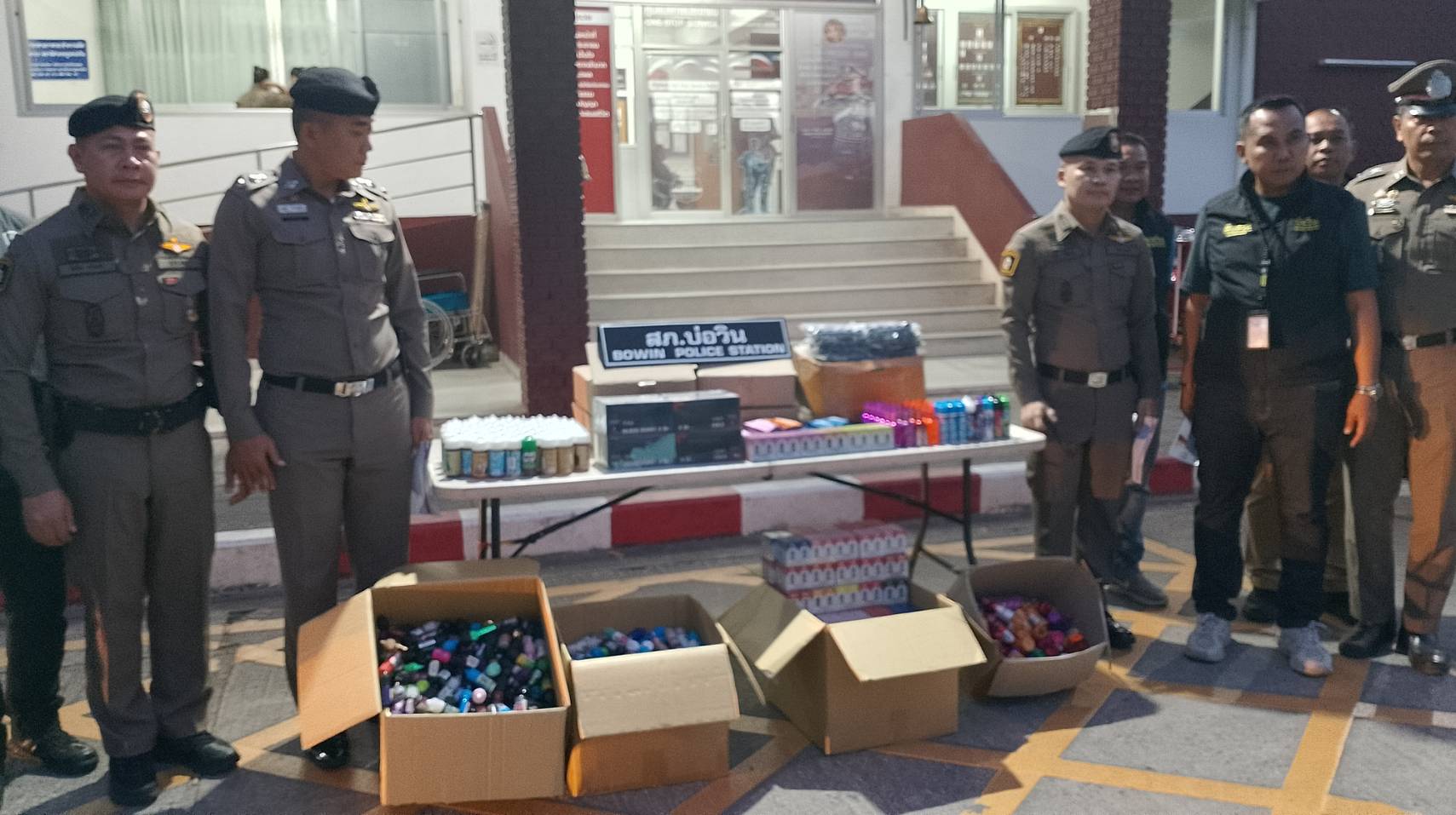 เมื่อเวลา18.30น.(12มี.ค.2568) ที่หน้าสภ.บ่อวินพ.ต.อ.กฤศ ธิติทัศนะ ผกก.สภ.บ่อวิน พร้อมชุดจับกุมได้แถลงข่าวการกวาดล้างจับกุมผู้ค้าบุหรี่ไฟฟ้าในพื้นที่บ่อวิน ภายใต้การอำนวยการของพ.ต.อ.กฤศ ธิติทัศนะ ผกก.สภ.บ่อวิน พ.ต.ท.ศรันยพงศ์ ไหมทองกุล รองผกก.ป.สภ.บ่อวิน พ.ต.ท.ชัชชัย ศรีพลังสวป.(ชส.)สภ.บ่อวิน สั่งการให้พ.ต.ท.สมคิด ยานะพันธ์ รองผกก.สส.สภ.บ่อวิน พ.ต.ท.วีระ วัฒนาณรงค์ชัยสว.สส.สภ.บ่อวินออกสืบสวนจับกุมการจำหน่ายบุหรี่ไฟฟ้าในพื้นที่ โดยนำกำลังชุดสืบสวนออกสืบจนพบว่ามีอุปกรณ์ส่วนควบบุหรี่ไฟฟ้าซุกซ่อนอยู่ที่หอพักแห่งหนึ่งในพื้นที่หมู่3 ตำบลบ่อวิน อำเภอศรีราชา