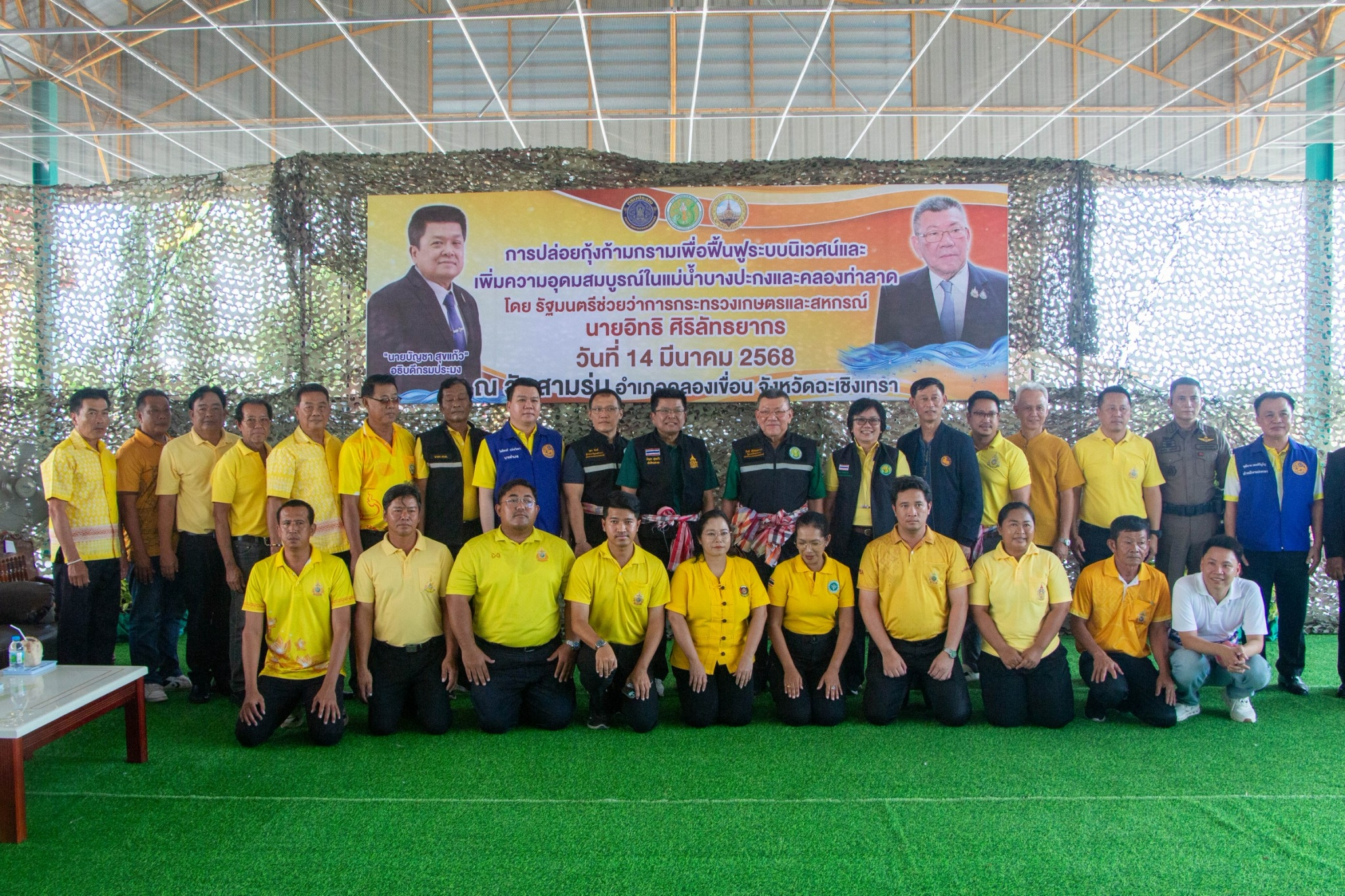 วันที่ 14 มีนาคม 2568 เวลา 09.00 น. นายอิทธิ ศิริลัทธยากร รัฐมนตรีช่วยว่าการกระทรวงเกษตรและสหกรณ์ เป็นประธานเปิดกิจกรรมปล่อยพันธุ์กุ้งก้ามกรามเพื่อฟื้นฟูระบบนิเวศน์ และเพิ่มความอุดมสมบูรณ์ของสัตว์น้ำ ในแม่น้ำบางปะกงและคลองสาขา จ.ฉะเชิงเทรา โดยกิจกรรมดังกล่าวจัดขึ้นในพื้นที่ 2 แห่ง คือ วัดสามร่ม ต.บางเล่า อ.คลองเขื่อน จ.ฉะเชิงเทรา และวัดเตาเหล็ก ต.พนมสารคาม อ.พนมสารคาม จ.ฉะเชิงเทรา โดยมี นายภูผา ลิกค์ ผู้ช่วยเลขานุการรัฐมนตรีว่าการกระทรวงเกษตรและสหกรณ์ นายบัญชา สุขแก้ว อธิบดีกรมประมง นายประสิทธิ์ อินทโชติ รองผู้ว่าราชการจังหวัดฉะเชิงเทรา ผู้บริหารกระทรวงเกษตรและสหกรณ์ ประมงจังหวัด สมาคมกุ้งตะวันออกไทย หัวหน้าส่วนราชการ และประชาชน เข้าร่วม