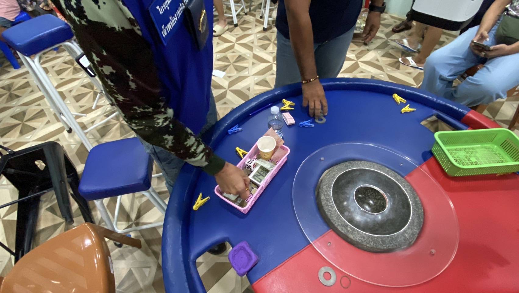 ประเภทบอล เต๋าปั่น และมวยตู้ โดยไม่ได้รับอนุญาตเย้ยกฎหมายมานานนับปี โดยมี เจ้าของบ่อนชื่อ นายรอ หลังจากชุดเฉพาะกิจกรมการปกครอง ได้รับการร้องเรียนจากชาวบ้านจึง นำกำลังเข้าตรวจสอบในพื้นที่ดังกล่าว ซึ่งภายในมีนักพนันเล่นอยู่เกือบ 100 คน หลังเห็นเจ้าหน้าที่ต่างแยกย้ายกันหลบหนีคนละทิศและทาง เจ้าหน้าที่สามารถจับกุมนักพนันได้ในที่เกิดเหตุ 50 คน ทั้งหมดถูกนำส่งด้วยรถหกล้อจำนวน 2 คัน และรถปิ๊กอัพ มายังสภ. แกลง เพื่อทำบันทึกจับกุมทันที หลังจากการจับกุมผู้สื่อข่าวรายงานว่า นายกันตพล สุขสงค์ นายอำเภอแกลง จังหวัดระยองเจ้าของพื้นที่ ได้เดินทางมายังสภ. แกลง เพื่อมาควบคุมสั่งการ