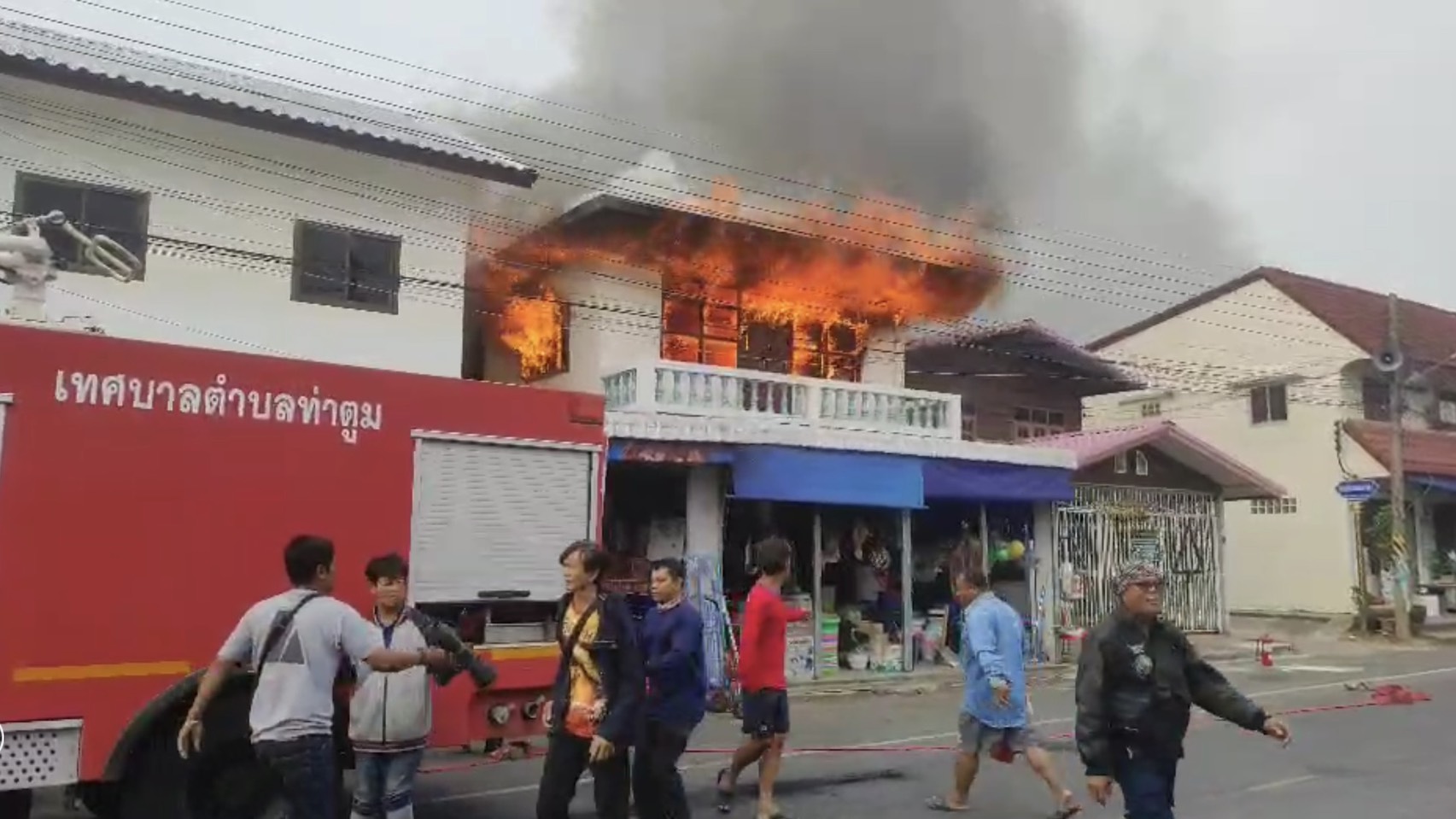 เมื่อเวลา 08.00 น. วันนี้ ( 21 มี.ค. 2568 ) ได้เกิดเหตุเพลิงไหม้บ้านเลขที่ 173/1 หมู่ 7 ตำบลท่าตูม อ.ท่าตูม จ.สุรินทร์ ซึ่งเป็นบ้าน 2 ชั้นครึ่งตึกครึ่งไม้ โดยชั้นล่างเปิดเป็นร้านขายของเบ็ดเตล็ด ซึ่งเป็นบ้านของ นางสาวกันธิมา สร้อยจิตรอายุ 46 ปี โดยขณะเกิดเหตุมีผู้อยู่อาศัยด้วยกัน 3 คน คือนางสาวกันธิมา และแม่กับพี่สะใภ้ โดยนางสาวกันธิมา ได้เล่าเหตุการณ์ให้ผู้สื่อข่าวฟังว่า ก่อนเกิดเหตุตนได้ขึ้นไปจุดธูปไหว้พระที่ห้องนอนชั้นบน แล้วก็ลงมาขายของที่ชั้นล่าง แต่พอสักพักก็เห็นควันพวยพุ่งลงมาจากห้องนอนชั้นบน ก่อนจะเห็นเป็นเปลวเพลิงลุกไหม้ ตนจึงได้วิ่งออกจากบ้านมาขอความช่วยเหลือจากเพื่อนบ้าน จากนั้นก็รีบแจ้งไปยังหน่วยดับเพลิงของเทศบาลตำบลท่าตูม และ สภ.ท่าตูม เพื่อขอรถดับเพลิงเข้าระงับเหตุ