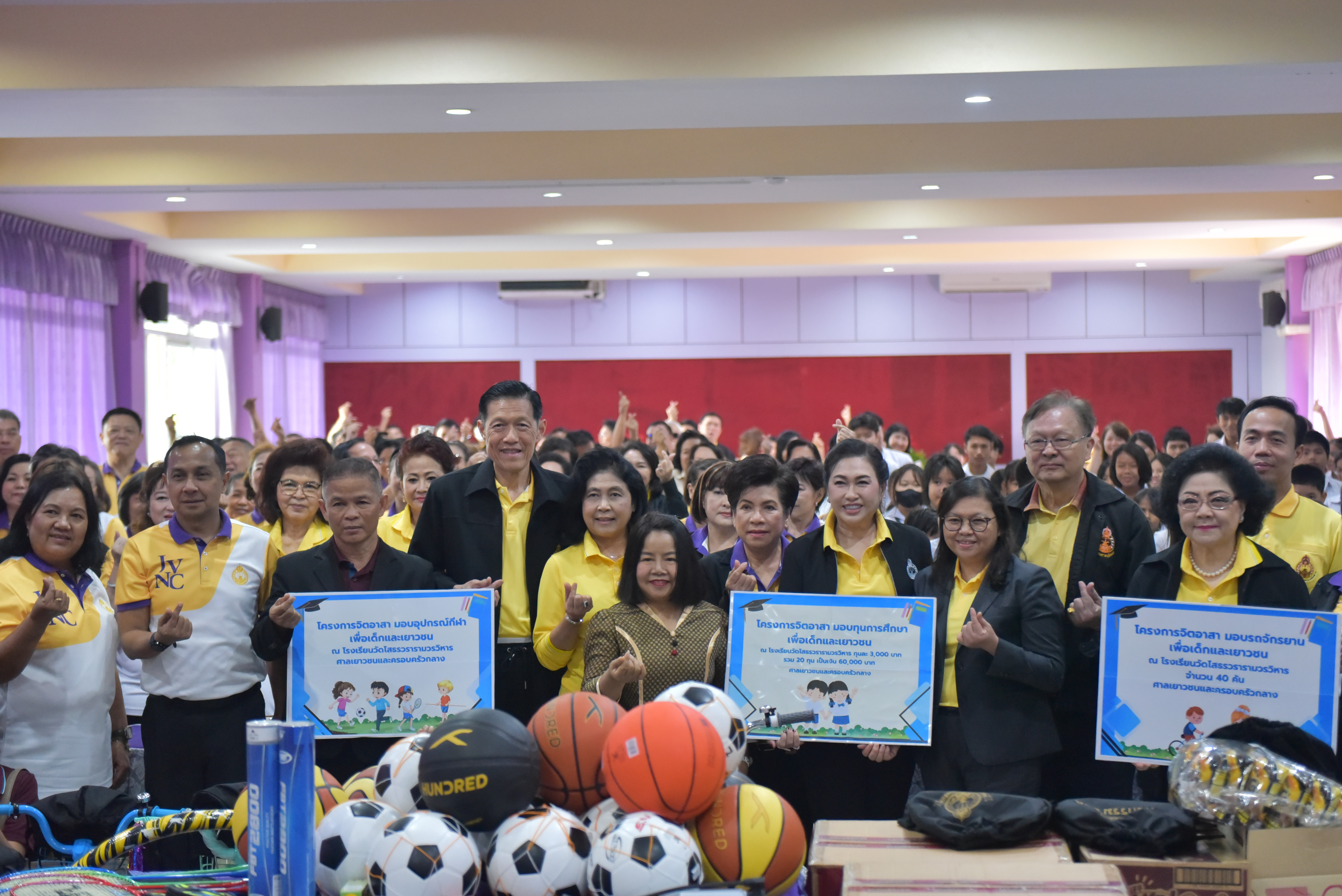 จากนั้นเวลา 09.00 น. เดินทางไปยังโรงเรียนวัดโสธรวราราม วรวิหาร จังหวัดฉะเชิงเทรา เพื่อเข้าร่วมกิจกรรมจิตอาสาบำเพ็ญสาธารณประโยชน์เพื่อสังคม (CSR) สำหรับเด็ก เยาวชนและชุมชน โดยได้มอบทุนการศึกษาสำหรับนักเรียน จำนวน 20 ทุนๆ ละ 3,000 บาท และมอบจักรยานสำหรับเด็กเล็ก จำนวน 10 คน และจักรยานสำหรับเด็กโต จำนวน 30 คัน นอกจากนี้ ยังมีอุปกรณ์กีฬา เครื่องเขียน และสิ่งของอุปโภคบริโภคที่จำเป็นสำหรับนักเรียนมอบให้อีกด้วย