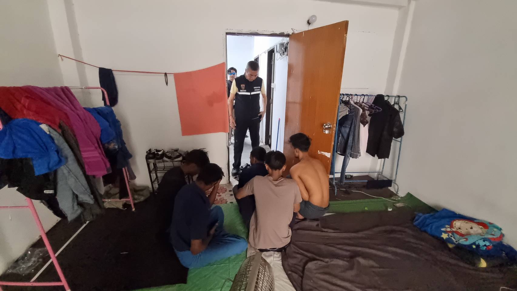 ซึ่งอาคารพาณิชย์ดังกล่าวเป็นอาคารพาณิชย์ 3 ชั้น ปลูกติดหลายคูหา โดยชั้นล่างทำเป็นร้านอาหาร ร้านนวดแผนโบราณ ชั้น 2 และ 3 ดัดแปลงเป็นห้องเช่า จากการเข้าตรวจค้นพบเป็นต่างด้าวชายหญิง สัญชาติ พม่า และอินเดีย รวม 16 คน จึงควบคุมตัวมาสอบสวนและตรวจสอบหลักฐานการเข้ามาอยู่อาศัย