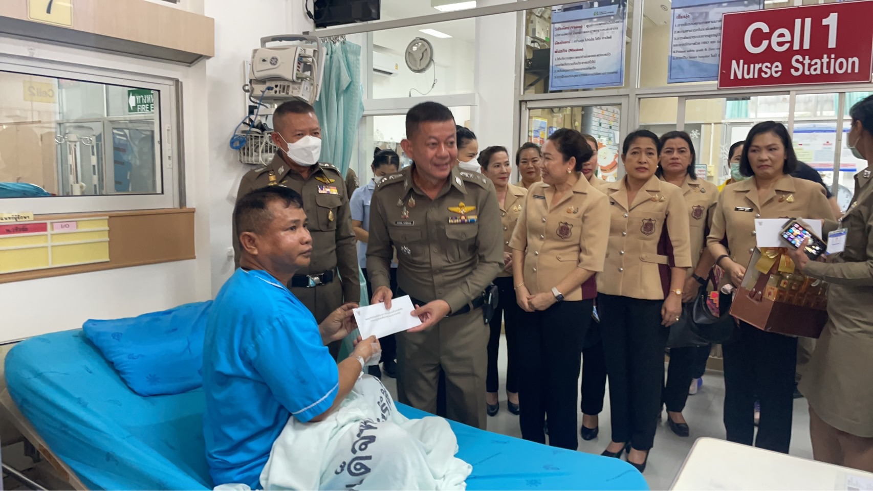 เวลา 16.30 น. ของวันนี้ 25 มี.ค. 68 ที่โรงพยาบาลสมเด็จพระนางเจ้าสิริกิติ์ กรมแพทย์ทหารเรือ ต.พลูตาหลวง อ.สัตหีบ จ.ชลบุรี พล.ต.ท.ธนายุตม์ วุฒิจรัสธำรงค์ ผู้ช่วยผู้บัญชาการตำรวจแห่งชาติ พร้อมด้วย นาง นภัสนันท์ วุฒิจรัสธำรงค์ กรรมการบริหารสมาคมแม่บ้านตำรวจ ระดับ ตร./ประธานที่ปรึกษาโครงการ “ครอบครัวตำรวจ เราไม่ทิ้งกัน” (ด้านตำรวจทุพพลภาพ) พร้อมด้วย ผศ.ดร.สุเนตร สุวรรณละออง รองประธานชมรมแม่บ้านตำรวจภูธรภาค 2 รักษาราชการแทนประธานชมรมแม่บ้านตำรวจภูธรภาค 2 , พ.ต.อ.อรรถพล พงษ์สุพรรณ รองผู้บังคับการตำรวจภูธรจังหวัดชลบุรี และคณะแม่บ้านชมรมแม่บ้านตำรวจภูธรภาค 2 ร่วมเข้าเยี่ยมและให้กำลังใจ ร.ต.ต.ภาสกร ภาชูระเบียบนา รอง สวป.สภ.สัตหีบ จ.ชลบุรี ซึ่งได้รับบาดเจ็บจากการปฏิบัติหน้าที่ ขณะเข้าระงับเหตุทะเลาะวิวาทและช่วยเหลือหญิงสาวคนหนึ่ง ที่บ้านพักในพื้นที่หมู่ 4 ต.สัตหีบ อ.สัตหีบ จ.ชลบุรี