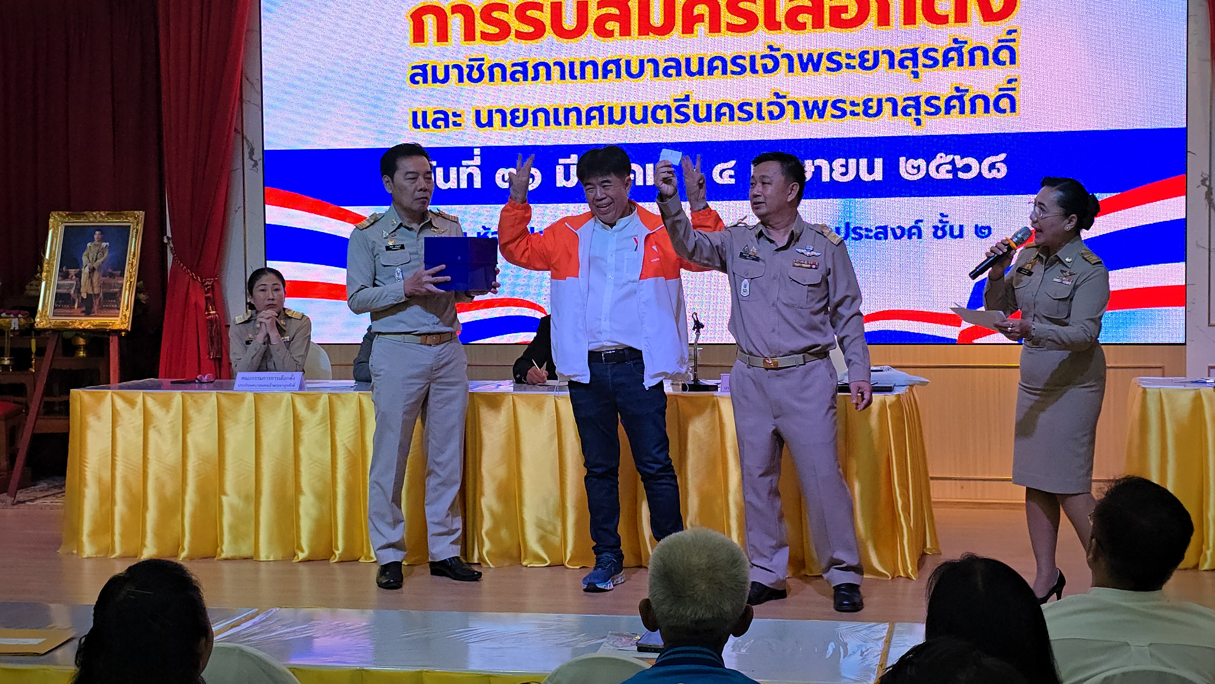 บรรยากาศรับสมัครเลือกตั้งนายกเทศมนตรีและสมาชิกสภาเทศบาลนครเจ้าพระยาสุรศักดิ์ สุดดุเดือด มีสามทีมร่วมชิงชัย เจ้าของตำแหน่งเดิม “นายกฮุ้น” อาคมเจตน์ พันธ์เฉลิมชัยโชค กลุ่มลูกเจ้าพระยา จับได้เบอร์ 1 นายเดชาโชติ ธีรธันยรัก กลุ่มเจ้าพระยาเพื่อประชาชน ได้เบอร์ 2 และ ดร.อภิชัย พิทยานุรักษกุล จากพรรคประชาชน ได้หมายเลข 3 ซึ่งเป็นเทศบาลนครที่มีพื้นที่มากที่สุดในประเทศไทย
