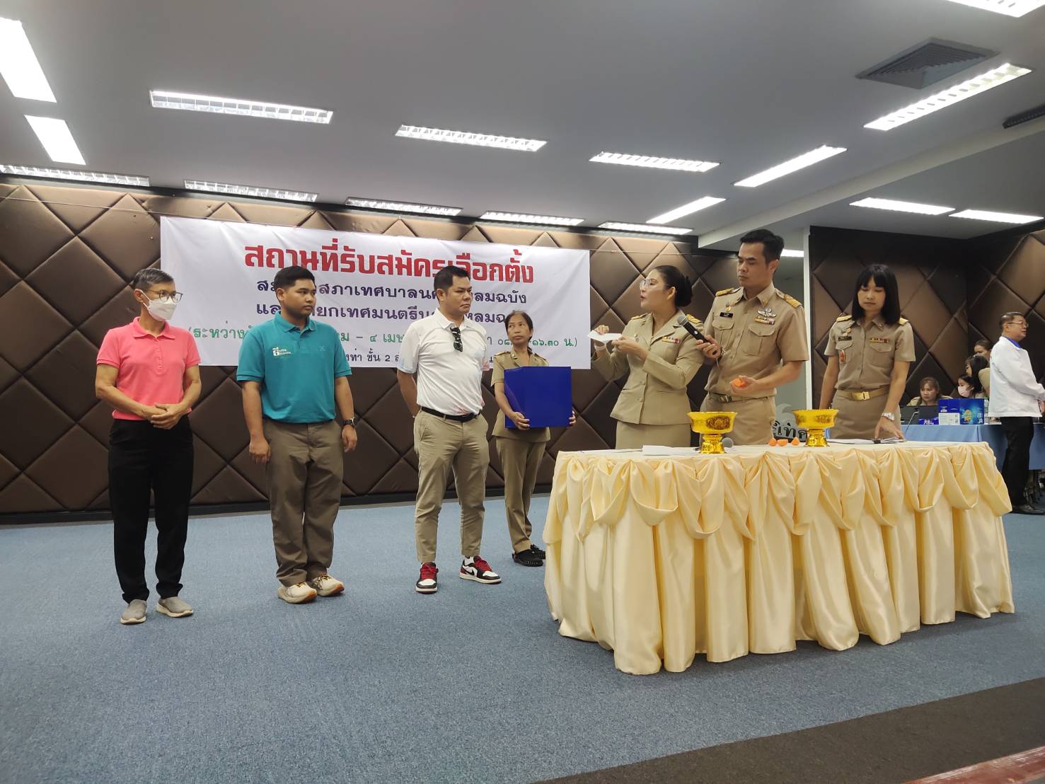 โดยในวันนี้ อดีตนายกเทศมนตรีตำบลแหลมฉบัง นายบุญเลิศ น้อมศิลป์ หัวหน้ากลุ่มพัฒนาบ้านเรา ได้เดินทางมาให้กำลังใจลูกทีม และมีประชาชนเดินทางมาเชียร์ มอบดอกไม้ เพื่อให้กำลังใจเป็นจำนวนมาก และหลังจากนี้ จะมีการตรวจสอบคุณสมบัติของผู้สมัครทั้งหมดอีกครั้ง จะมีการประกาศบัญชีรายชื่อผู้สมัครฯ อย่างเป็นทางการอีกครั้ง