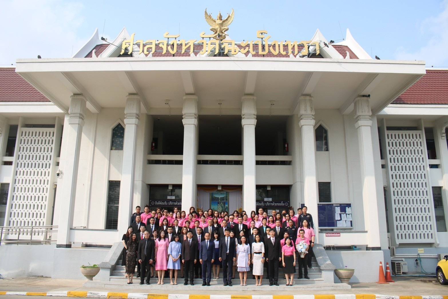 ถ่ายภาพร่วมกันบริเวณด้านหน้าอาคารศาลจังหวัดฉะเชิงเทรา