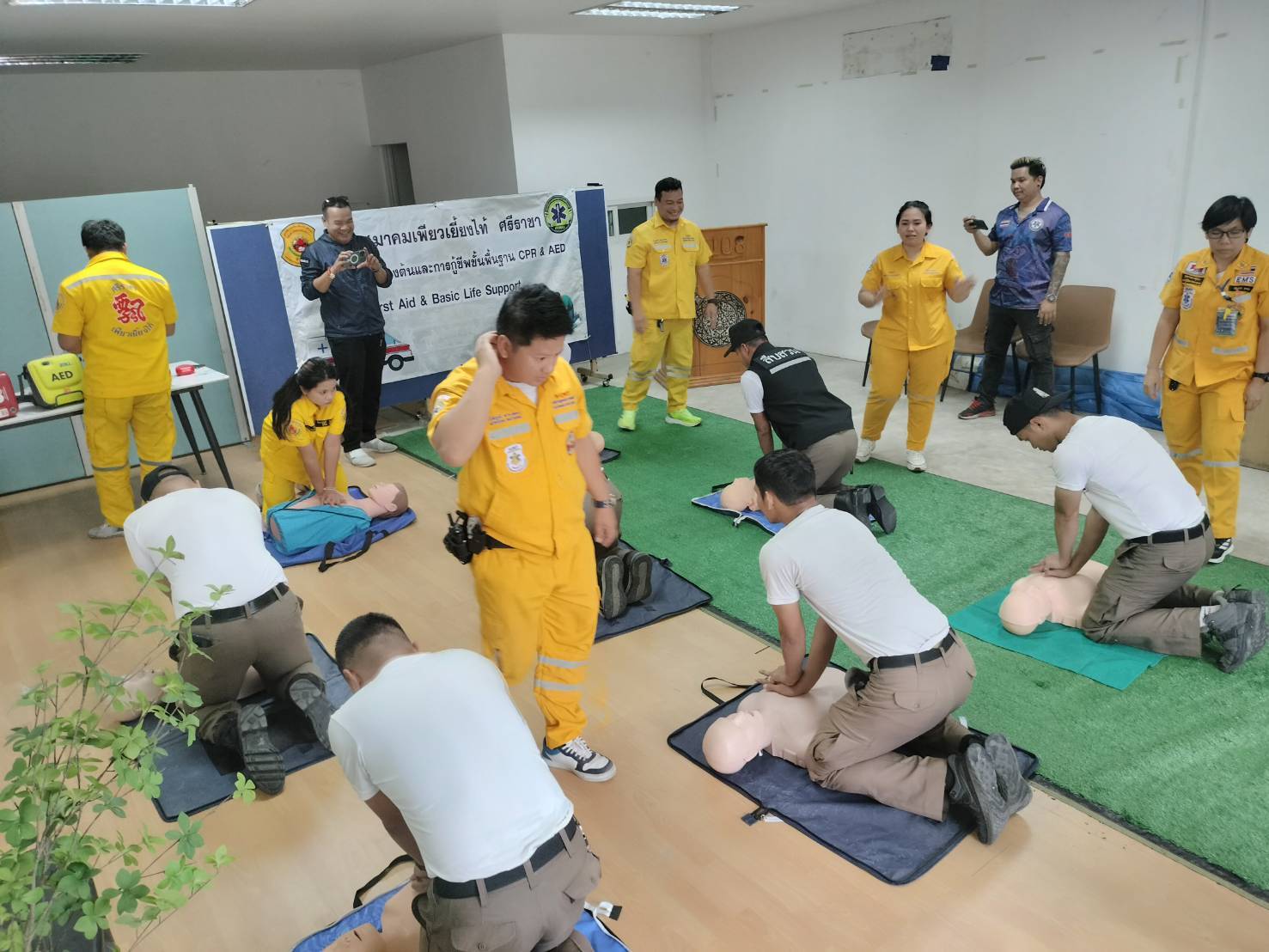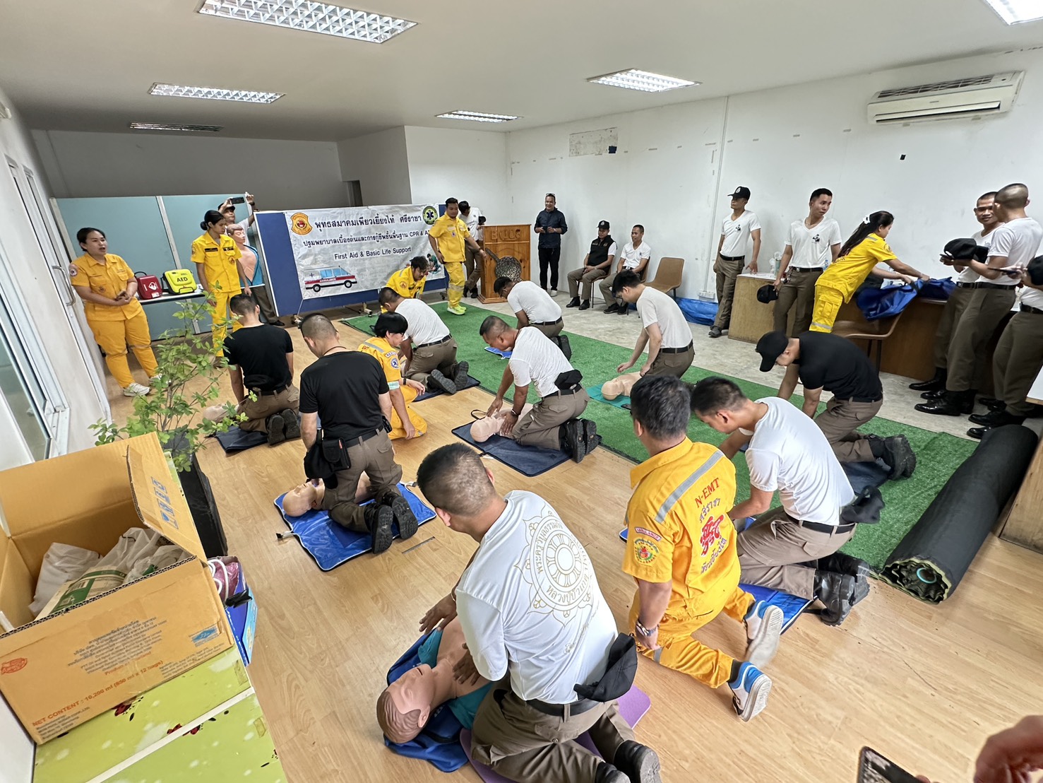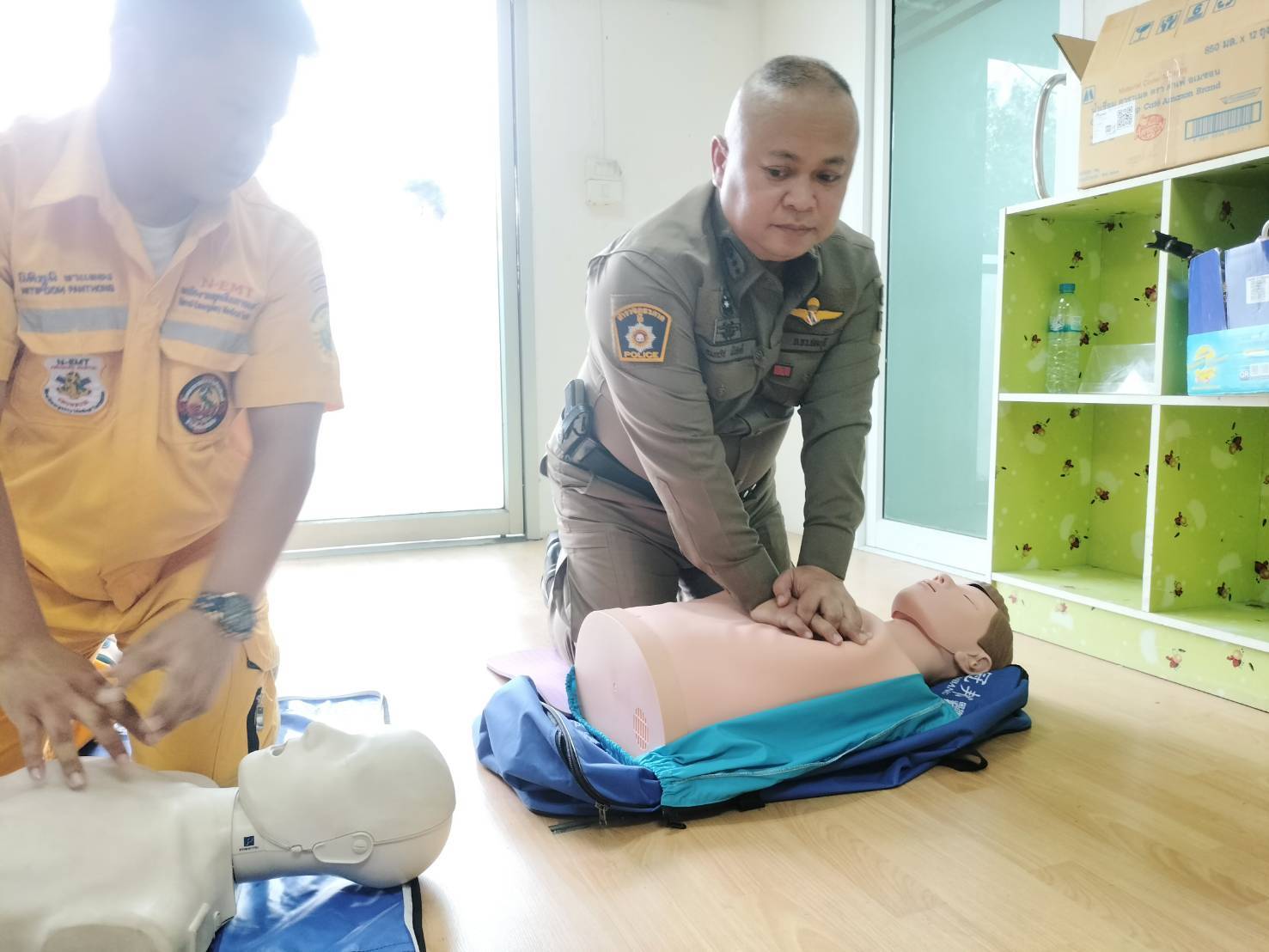 โดยได้รับการสนับสนุนเจ้าหน้าที่วิทยากรจากพุทธสมาคมเพียวเยี้ยงไท้ศรีราชา โดยนายเจริญ จุรีกานนท์ นายดพุทธสมาคมเพียวเยี้ยงไท้ศรีราชา ได้มอบหมายให้อาสาสมัครพุทธสมาคมเพียวเยี้ยงไท้ศรีราชาที่มีความรู้ ความสามารถในด้านการทำCPR และการใช้เครื่อง AED มาให้ความรู้ทั้งทฤษฎีและฝึกการปฏิบัติในการช่วยเหลือผู้ประสบเหตุต่างๆ ให้สามารถรอดชีวิตได้ในทุกสถานการณ์ เพื่อให้เจ้าหน้าที่ตำรวจสถานีตำรวจภูธรหนองขาม มีความรู้และทักษะในการทำCPR ปฐมพยาบาลเบื้องต้น สามารถช่วยเหลือผู้ป่วยเบื้องต้นได้อย่างถูกต้อง ก่อนจะนำส่งสถานพยาบาลได้อย่างปลอดภัย