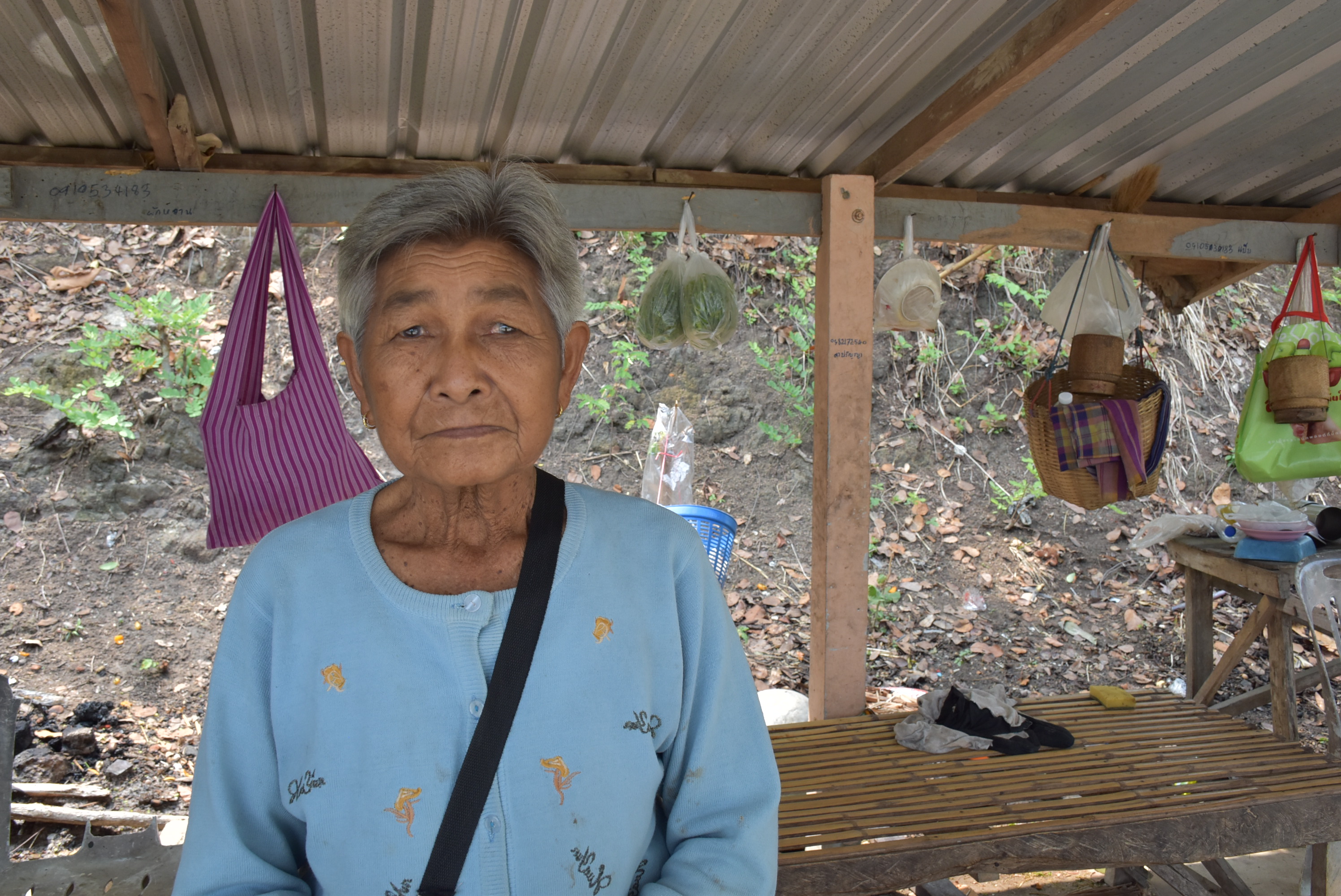ยายบุญทัน นามมณี อายุ 80 ปี ชาวบ้านกอไผ่โทนฯ เจ้าของแผงขายผักหวานป่า เปิดเผยว่า ตนทำหน้าที่นั่งขายที่แผง ส่วนการออกไปเก็บไปหาของป่านั้นลูก-หลานๆ พากันออกไปหา ชาวบ้านกอไผ่โทนฯ ออกหาของป่าทั้งหน้าฝน-หน้าร้อนเพราะพืชผักขึ้นตามฤดูกาลไม่เหมือนกัน เช่น หน้าร้อนเดือน มี.ค.-เม.ย เป็นช่วงของผักหวานป่า และไข่มดแดง ชาวบ้านจะหิ้งตะกร้า ถุงย่ามสะพายเข้าป่าตั้งแต่ช่วงตี 4 ตี 5 เพื่อเก็บผักหวานป่า ส่วนการแหย่ไข่มดแดงก็ออกจากบ้านเช้าเช่นกัน เมื่อได้พืชผักตามที่ต้องการจะนะมามาแยกมาคัดและนำมายังตลาดริมทางแห่งนี้ สิ่งที่นำมาจากป่าและโคกนั้นล้วนสดใหม่จริง ๆ ปลอดสารพิษ 100% . จึงเป็นที่ต้องการของลูกค้าที่สัญจรไปมาจะจอดรถแวะเข้ามาเลือกซื้อกันทุกวัน