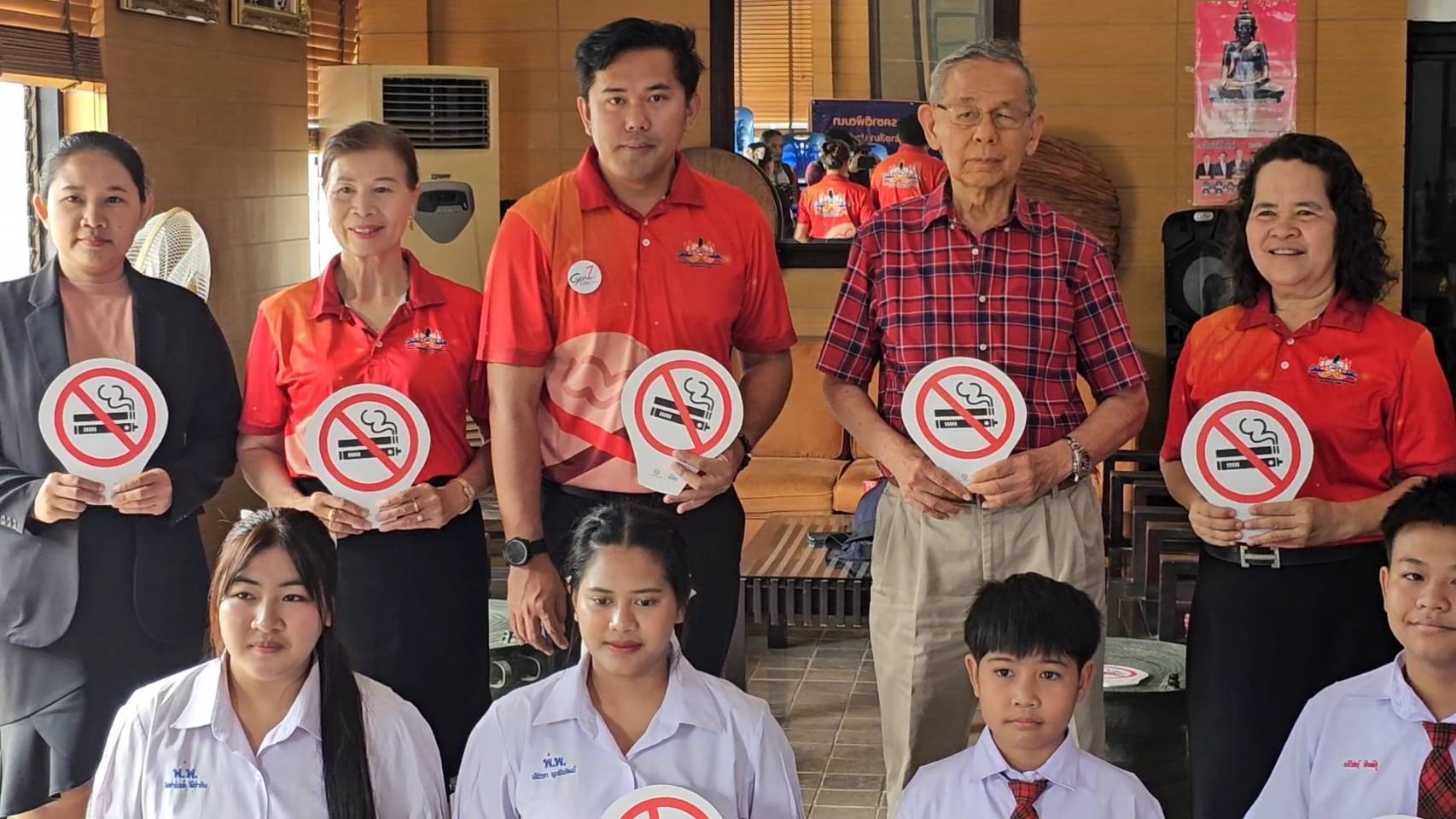 จากนั้นได้ร่วมกันชูป้ายพัดข้อความและสัญลักษณ์ “ร่วมปกป้องเด็กและเยาวชนจากบุหรี่ไฟฟ้า”