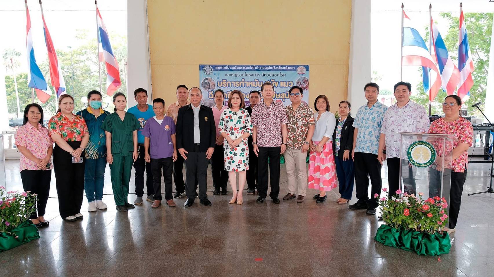 วันที่ 8 เมษายน 2568 เทศบาลเมืองฉะเชิงเทรา ร่วมกับ ปศุสัตว์จังหวัดฉะเชิงเทรา จัดโครงการทำหมันถาวรให้แก่สุนัข แมว เพื่อลดจำนวนประชากรสัตว์ รวมทั้งบริการฉีดวัคซีนป้องกันโรคพิษสุนัขบ้า เป็นการป้องกันและลดจำนวนคนที่เสียชีวิต รวมทั้งสัตว์ที่ต้องตายด้วยโรคนี้ โดยนางขวัญกมล ฉายแสง นายกเทศมนตรีเมืองฉะเชิงเทรา