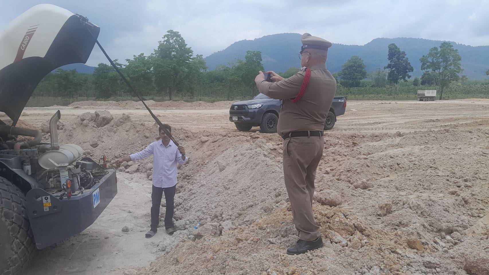 ร.ต.อ.วิทยา จำเริญสัตย์ พนักงานสอบสวนสภ.สำนักทอง อำเภอเมืองจังหวัดระยอง เข้าตรวจสอบที่เกิดเหตุ หลัง ตัวแทนห้างหุ้นส่วนจำกัดบิ๊ก