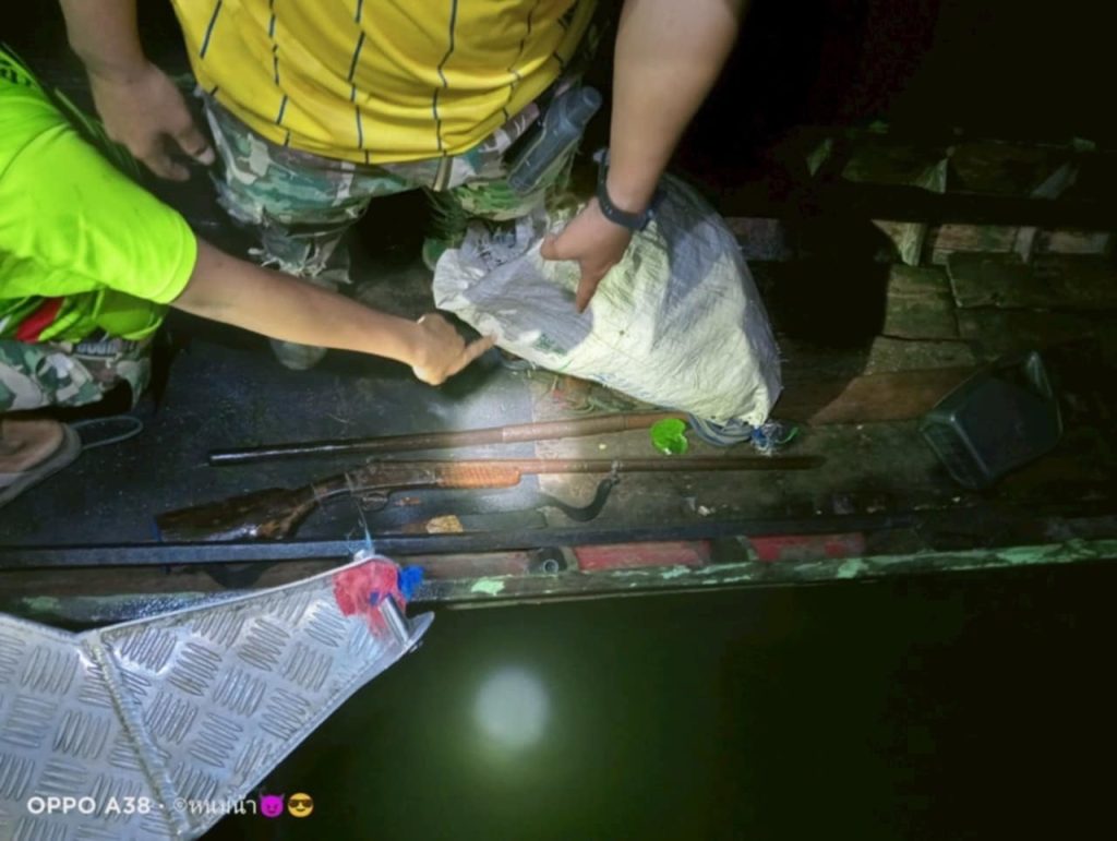 เมื่อเวลา 19.30 น. ของวันที่ 9 เมษายน เจ้าหน้าที่พบเรือหางยาวต้องสงสัยกำลังฉายไฟกลางผืนน้ำ จึงเข้าทำการแสดงตนขอตรวจสอบ แต่ผู้ขับขี่กลับพยายามหลบหนี ก่อนเจ้าหน้าที่ไล่ติดตามจนสามารถควบคุมตัวไว้ได้ในที่สุด